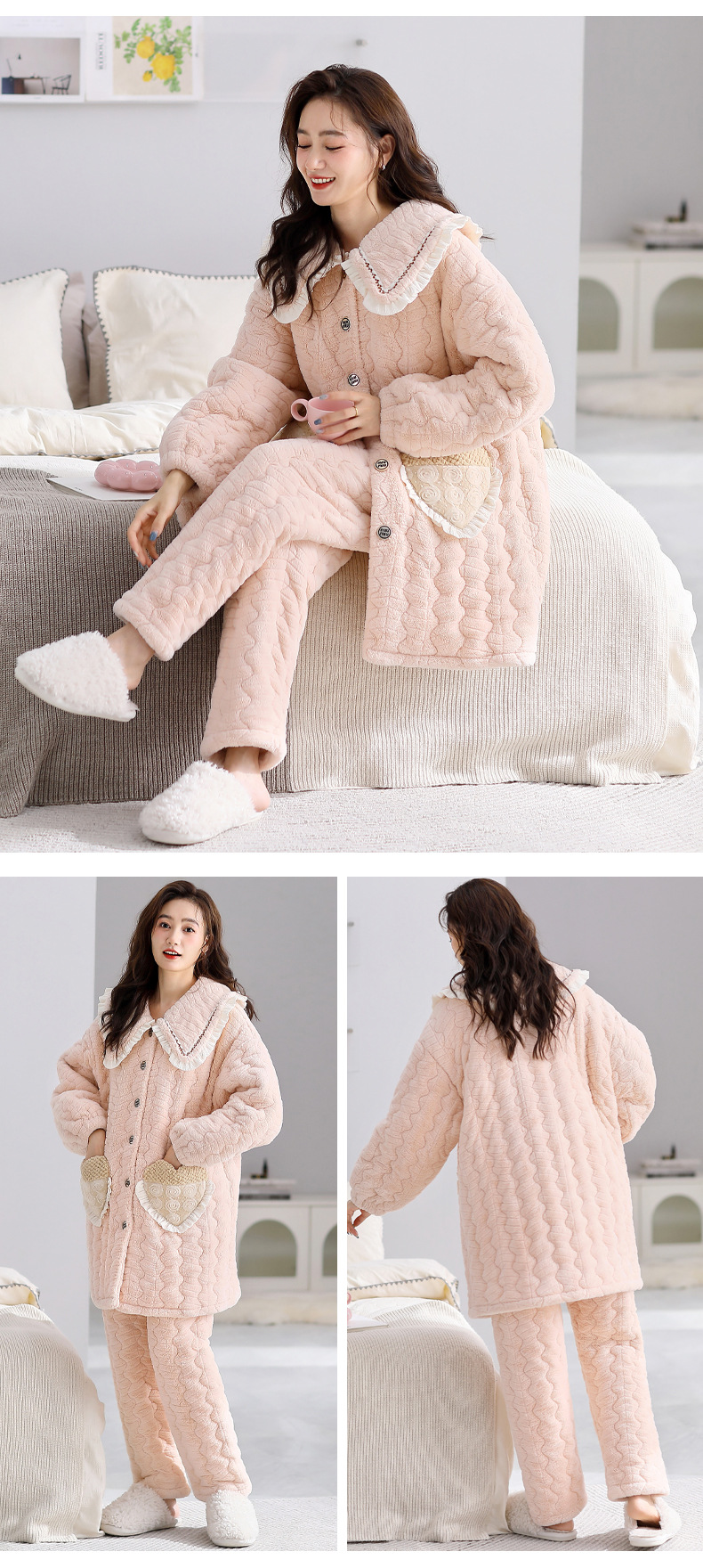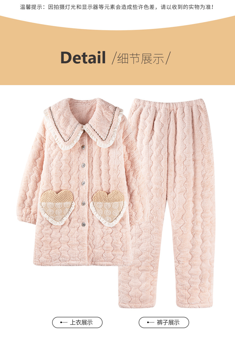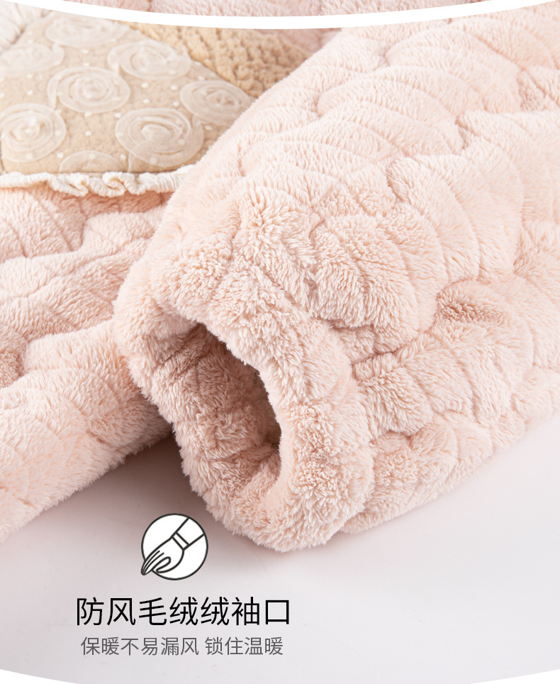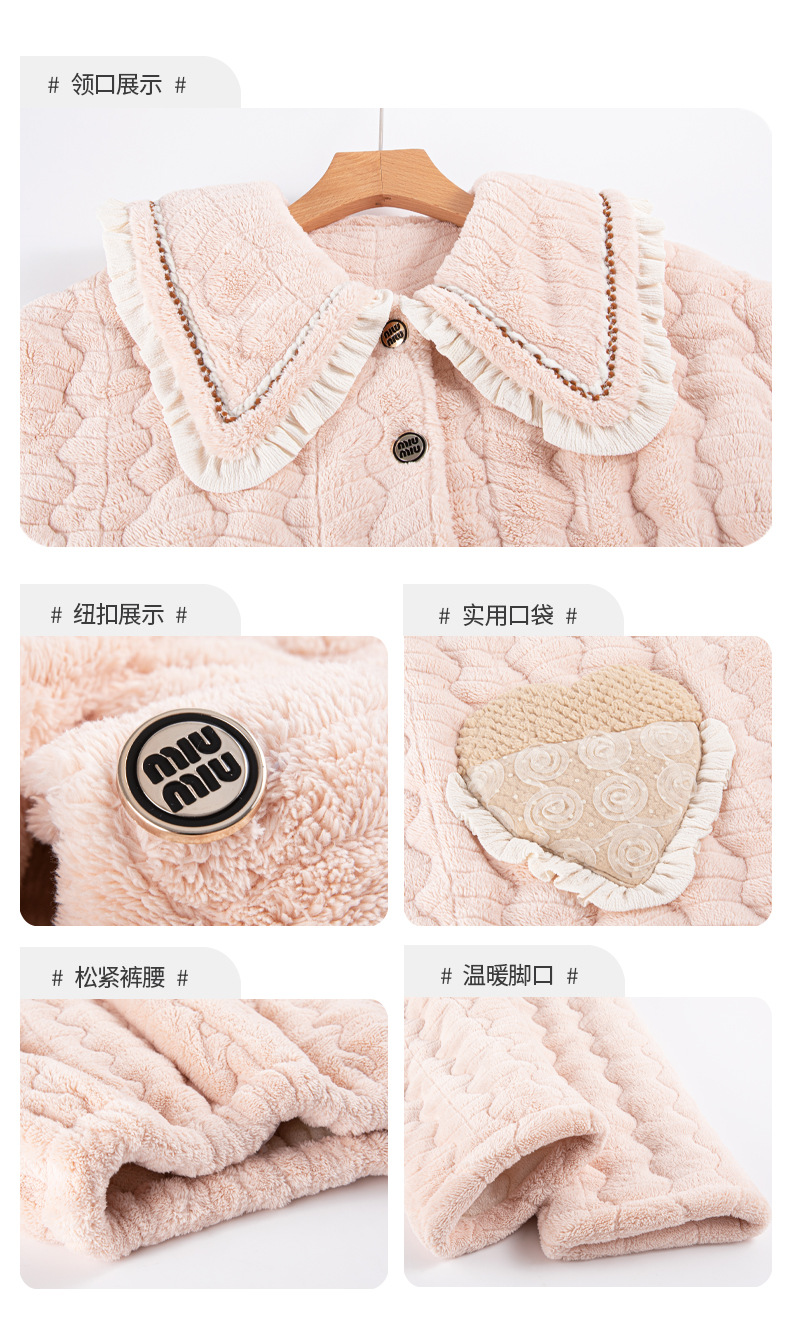 겨울 중간 길이의 산호 양털 3 층 면 패딩 재킷 파자마 여성 기모 두꺼운 긴 대형 옷깃 홈 옷 세트스토어 가기