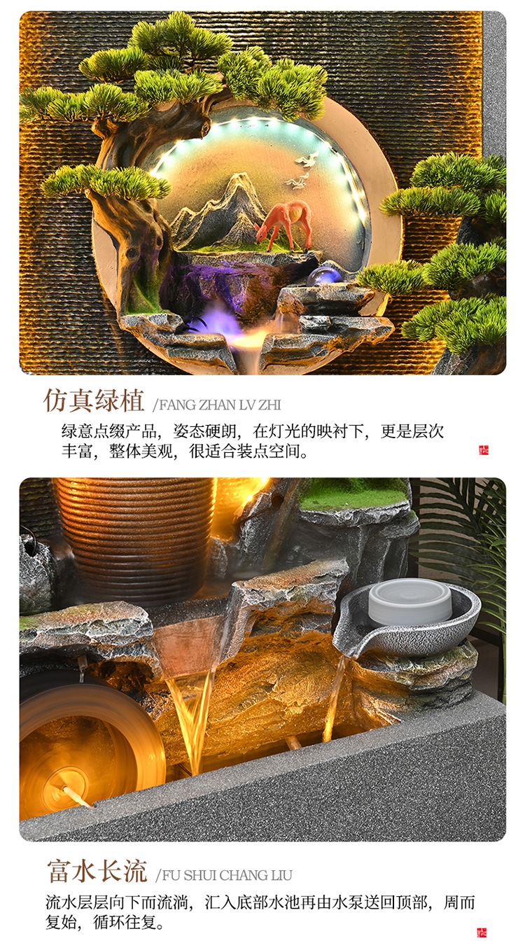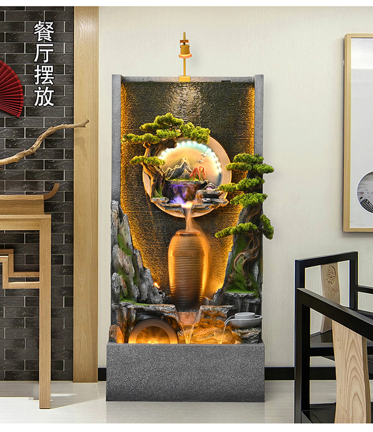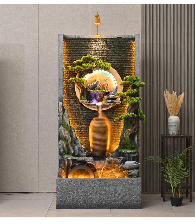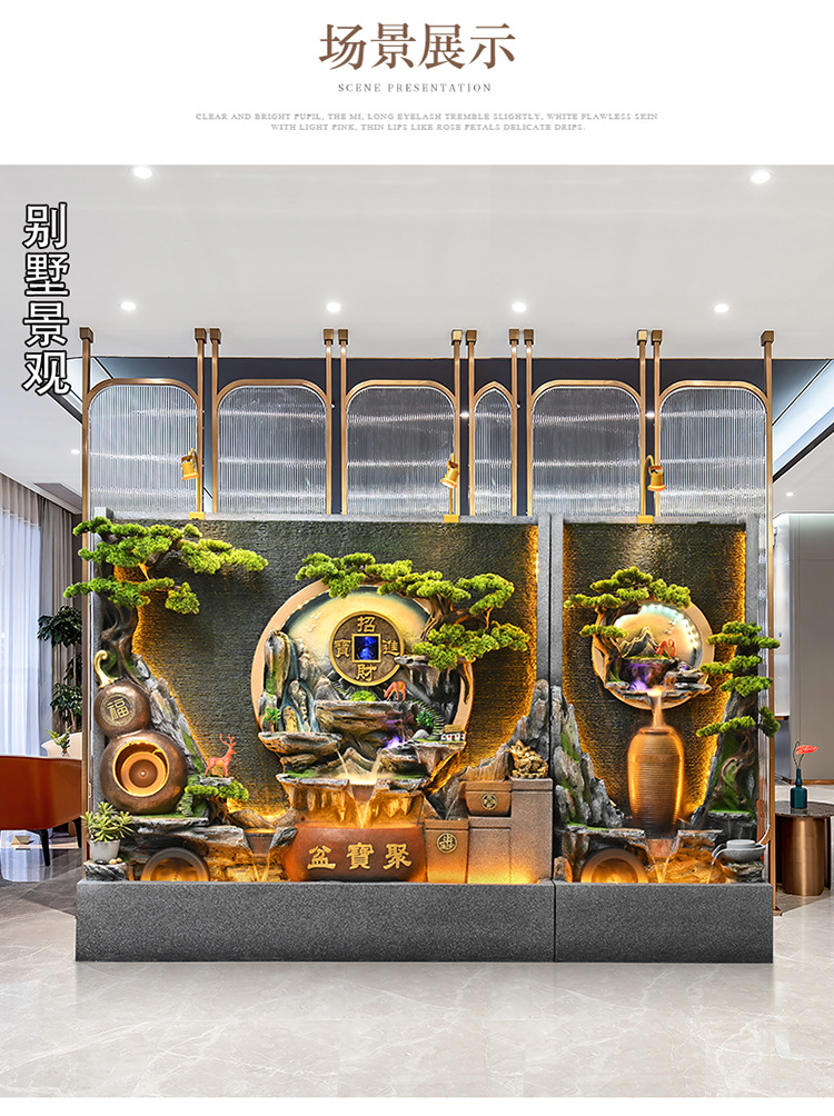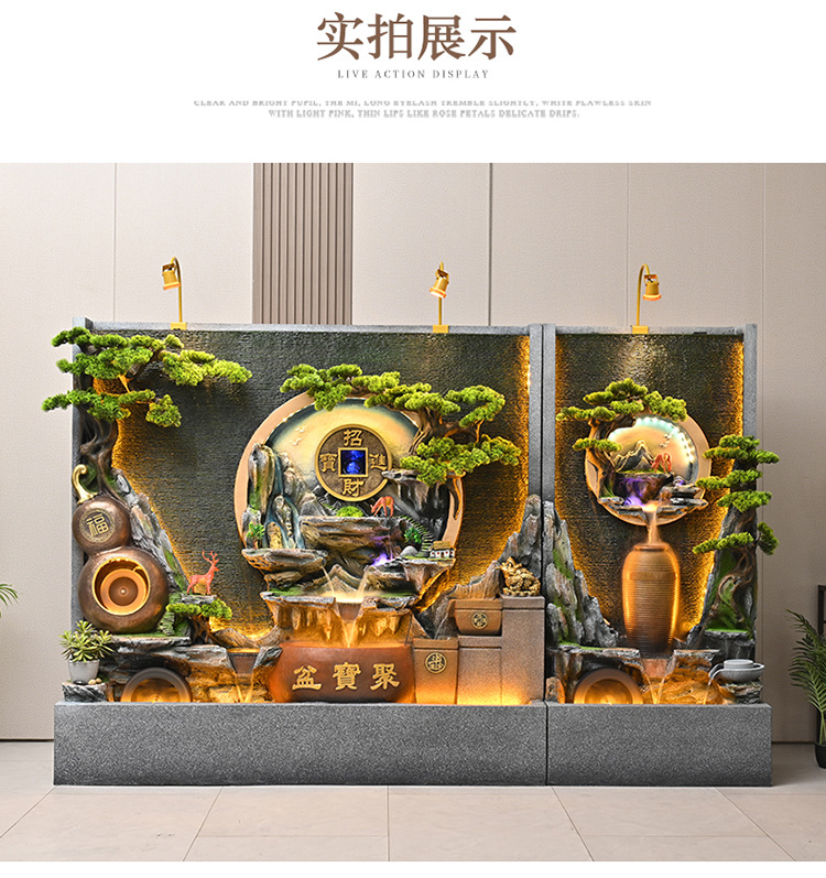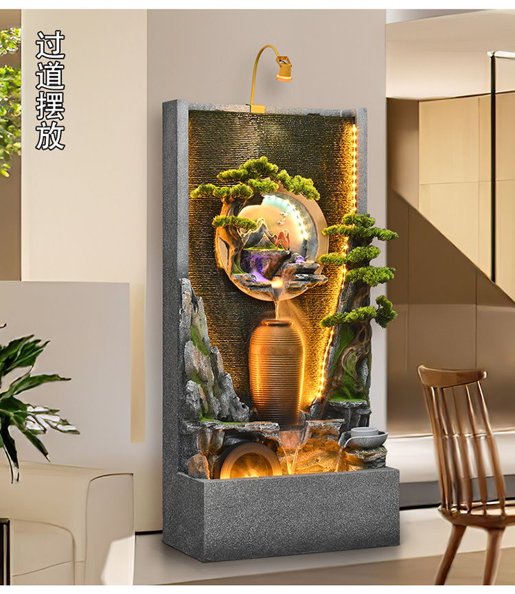 물 분수 물 커튼 벽 물고기 탱크 사무실 안뜰 풍경 장식품 거실 루킹 순환 물 장식 바위 Xuan스토어 가기