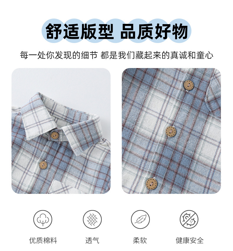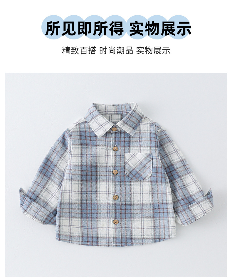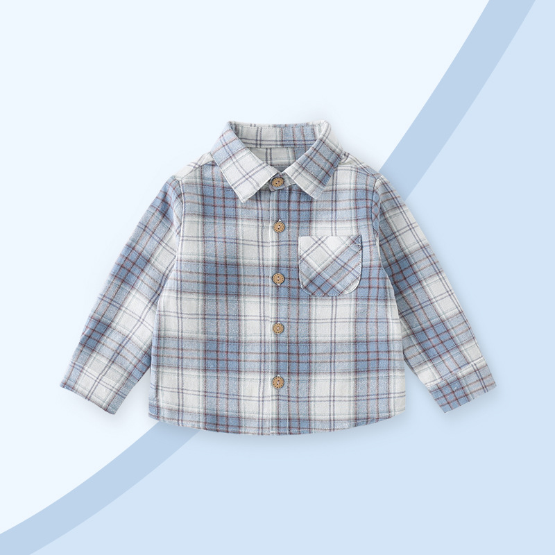 2024년 가을 신상 남아용 기모 체크 셔츠 1-3세 A급 안전 100% 면 봄 가을 이너웨어 셔츠스토어 가기