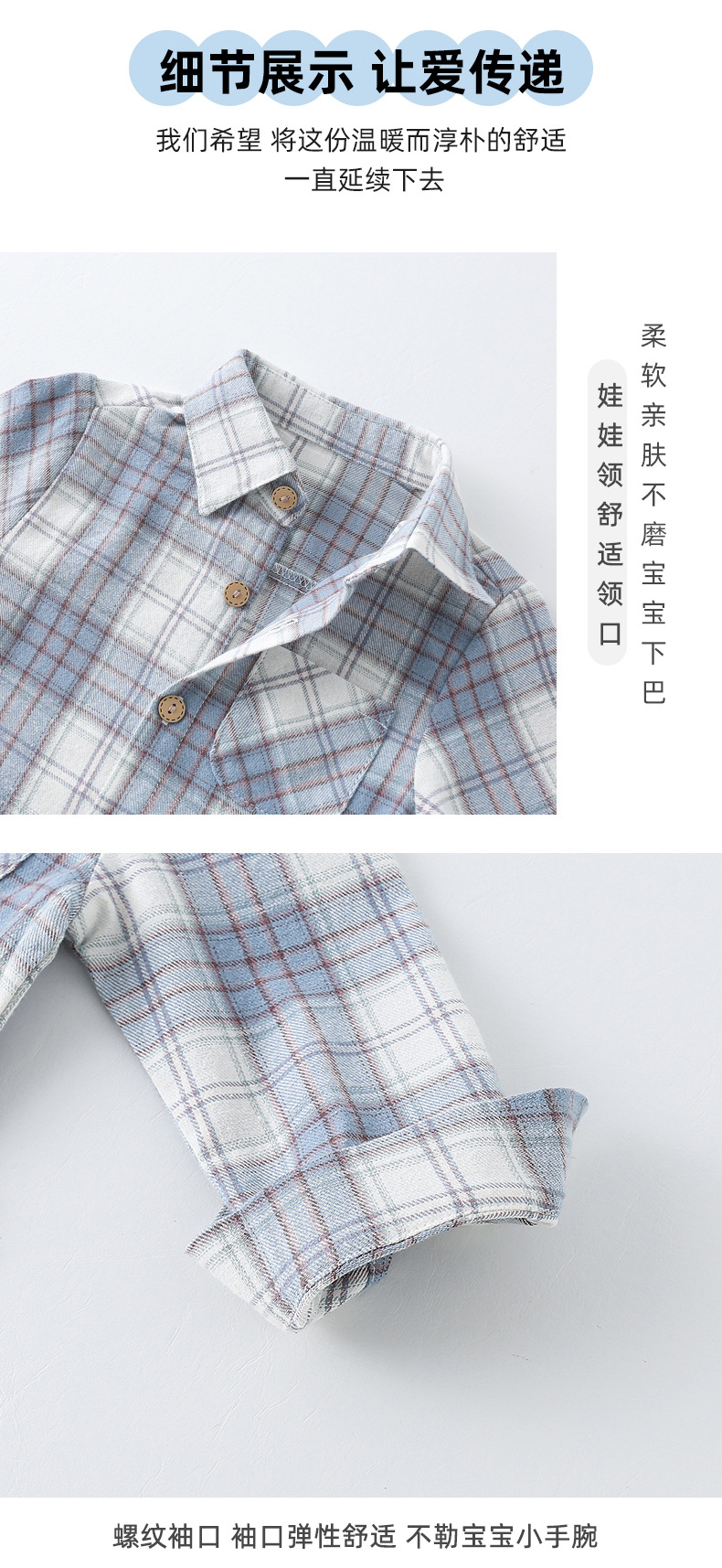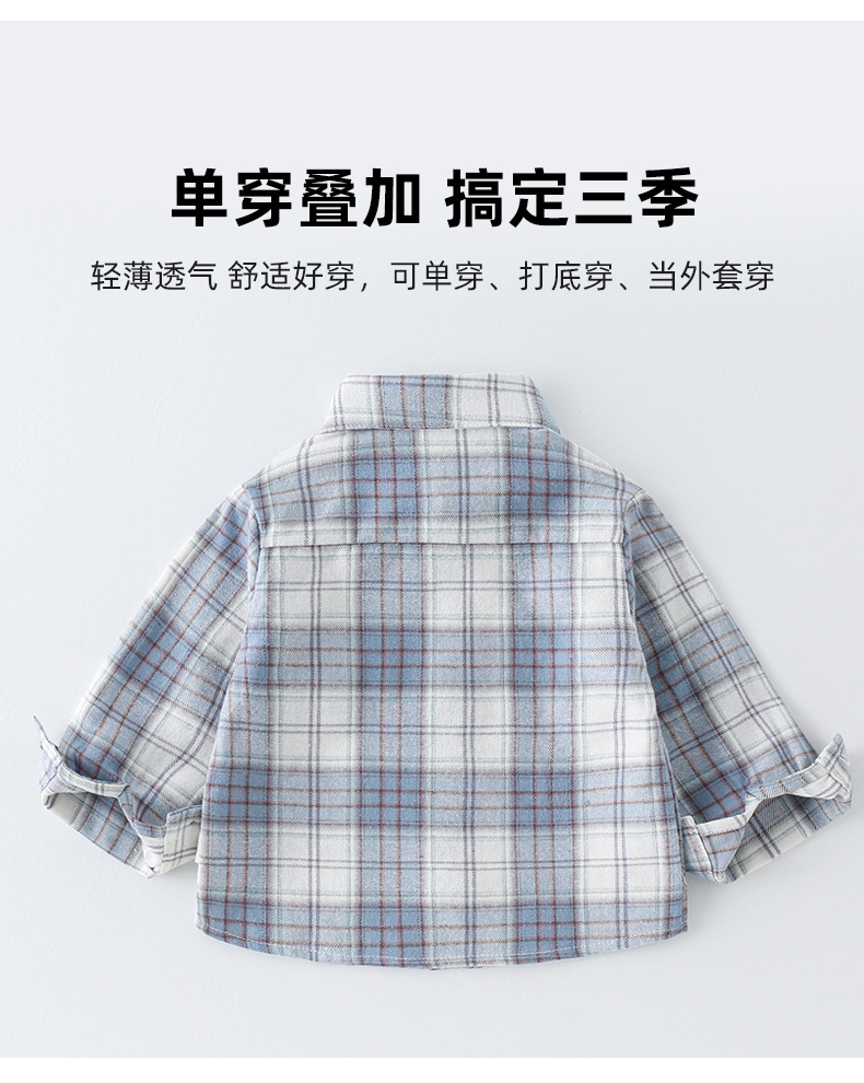 2024년 가을 신상 남아용 기모 체크 셔츠 1-3세 A급 안전 100% 면 봄 가을 이너웨어 셔츠