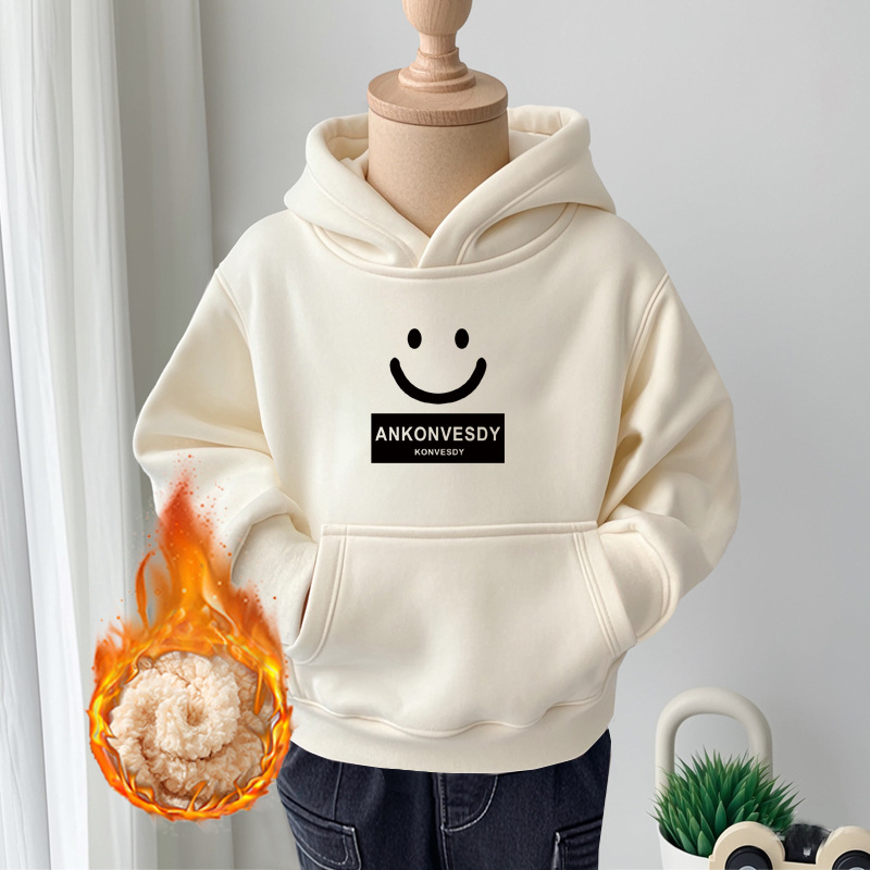 가을과 겨울 2024 새로운 소년과 소녀 코튼 후드 스웨트 기모 중대형 어린이를위한 두꺼운 고급 탑