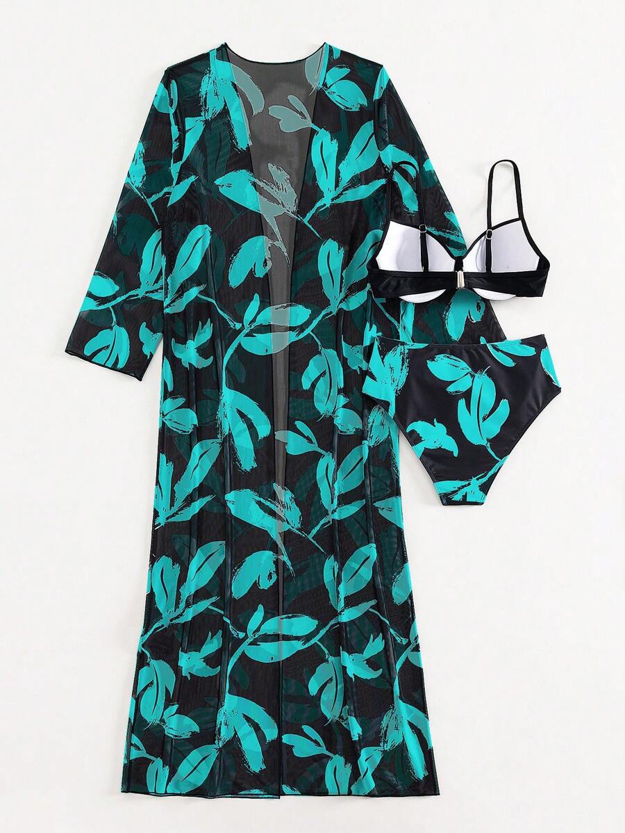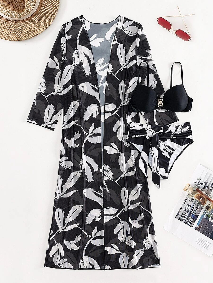 2024 새로운 수영복 3 피스 여성용 선 스크린 롱 셔츠 국경 유럽 및 미국 비키니 섹시 모임 분할 수영복