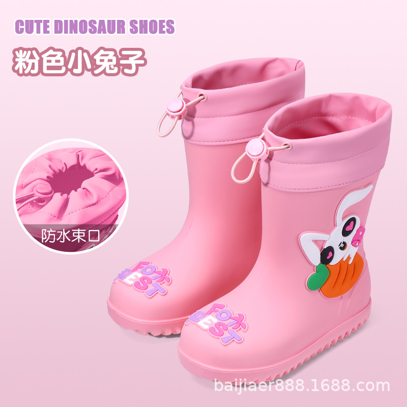 2024 새로운 어린이 장화 여성용 장화 미끄럼 방지 기모 방수 신발 소녀 아기 유치원 물 신발