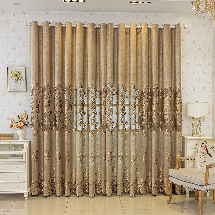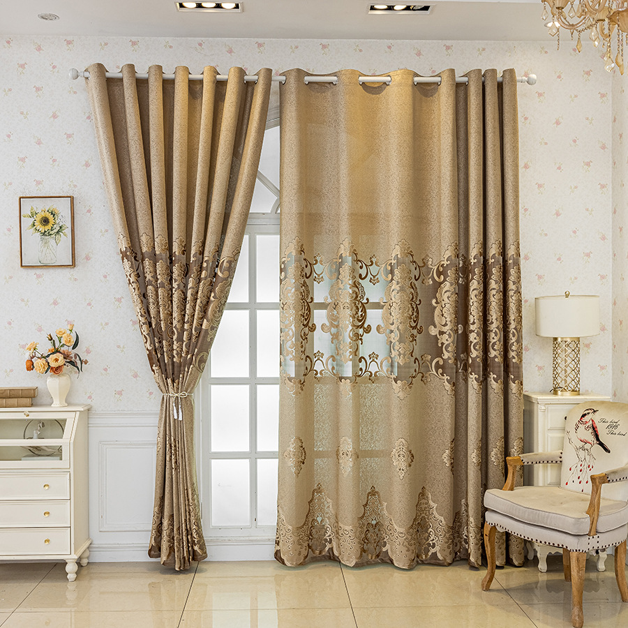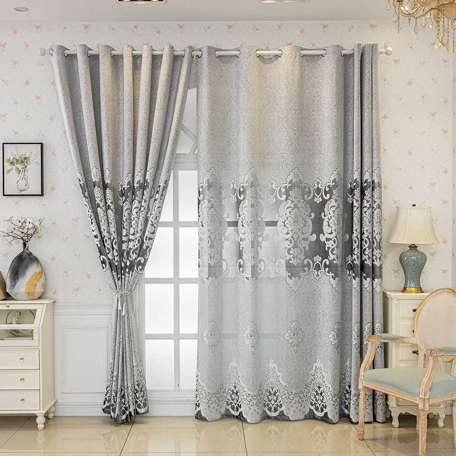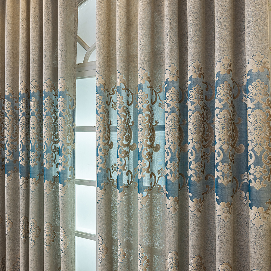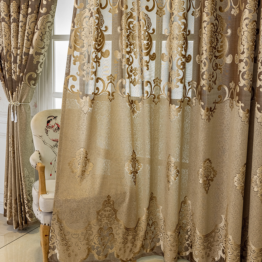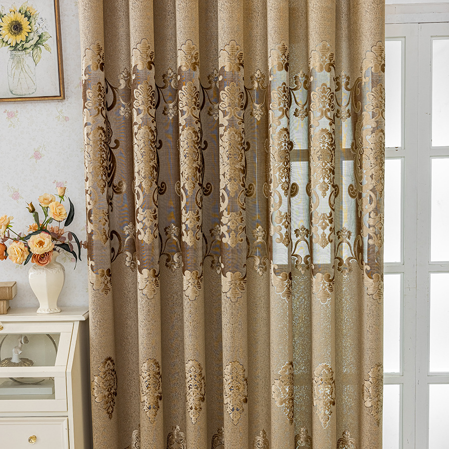 고급 분위기의 고급 유럽식 중공 자카드 커튼 거실 침실 발코니 빌라 궁전 마감 커튼 국경