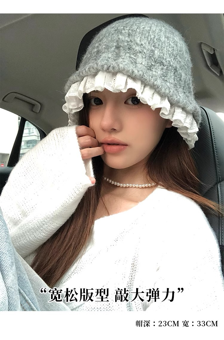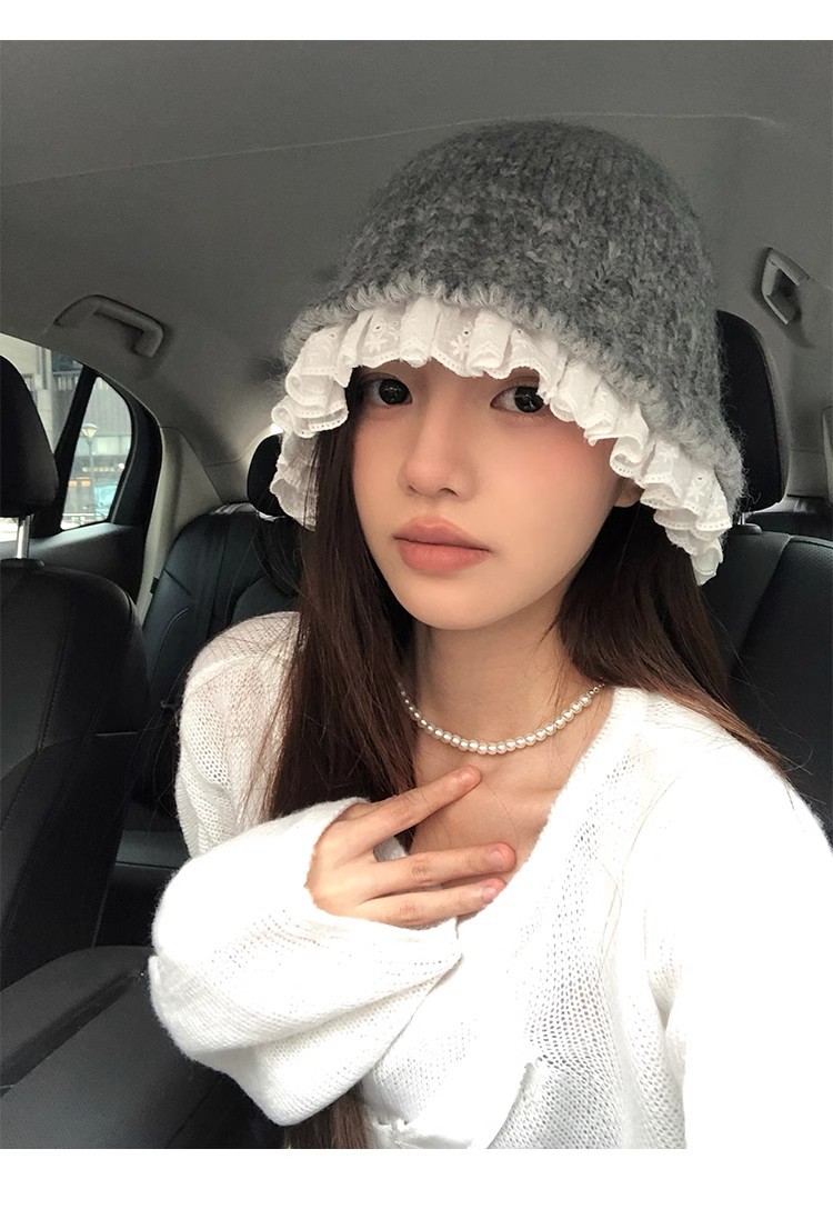 한국 스타일 레이스 니트 어부 모자 여성 가을 겨울 달콤한 따뜻한 얼굴 작은 양모 분지 모자 트렌디