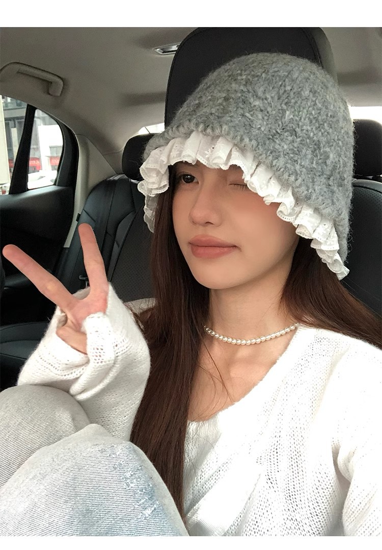 한국 스타일 레이스 니트 어부 모자 여성 가을 겨울 달콤한 따뜻한 얼굴 작은 양모 분지 모자 트렌디스토어 가기