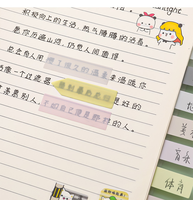 Morandi 형광 포스트잇 노트 학생 쓰기 느슨한 잎 간단한 투명 색인 귀여운 라벨 스티커