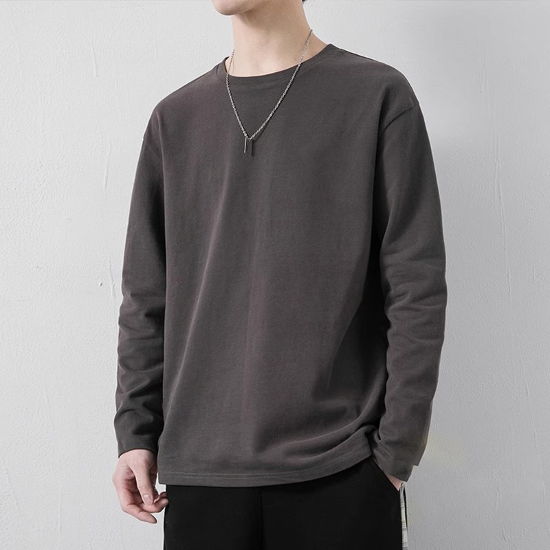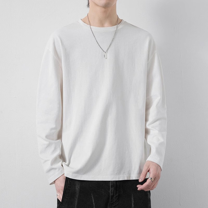 긴팔 겨울 이너웨어 순면 헤비웨이트 남성용 흰색 루즈핏 티셔츠 트렌디 브랜드 가을 겨울