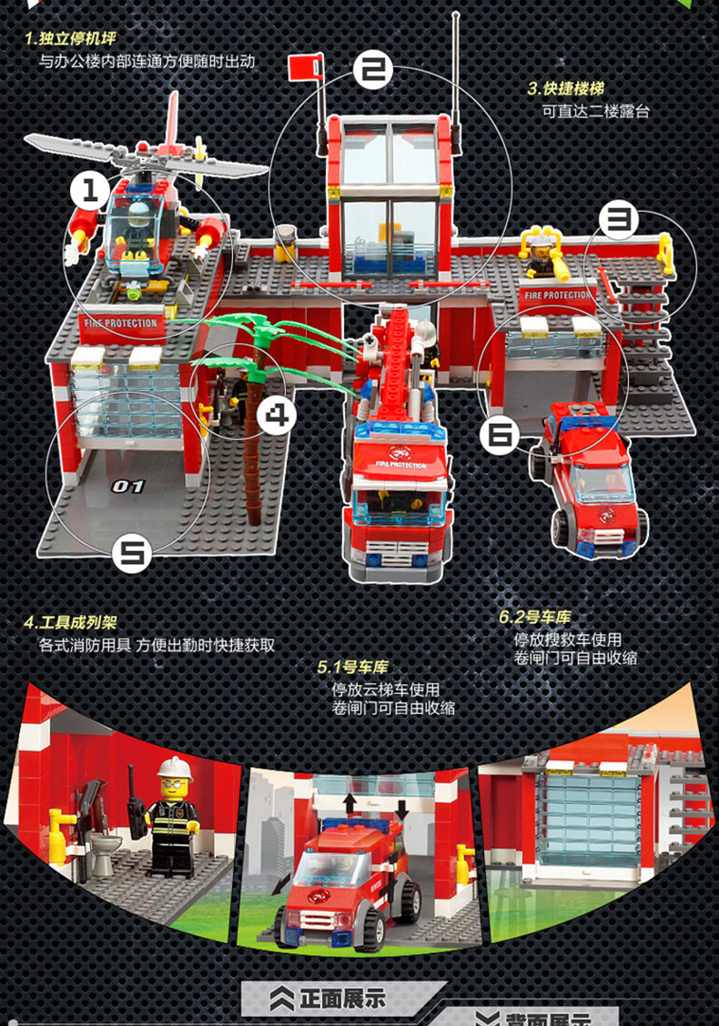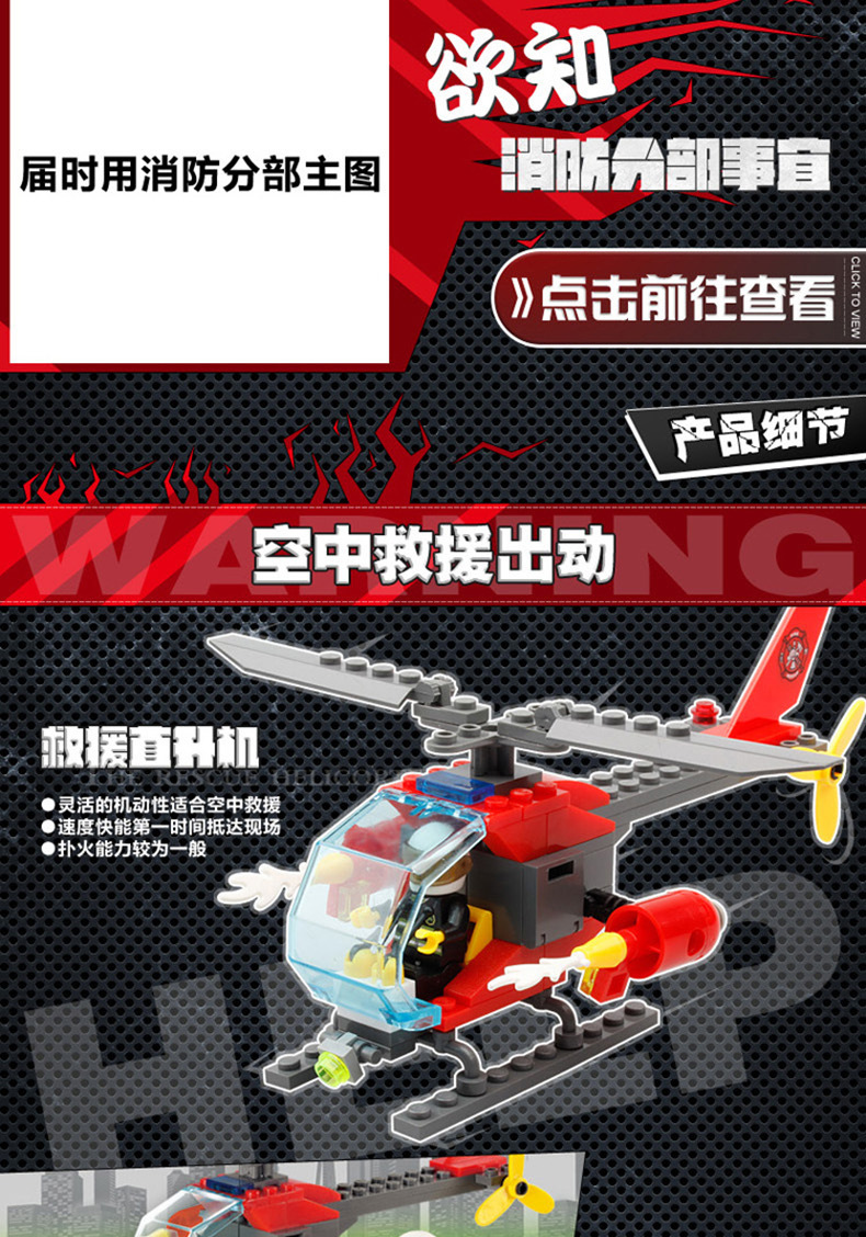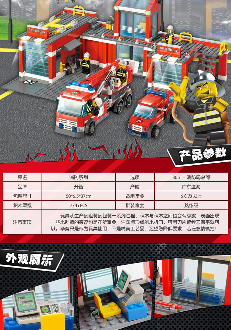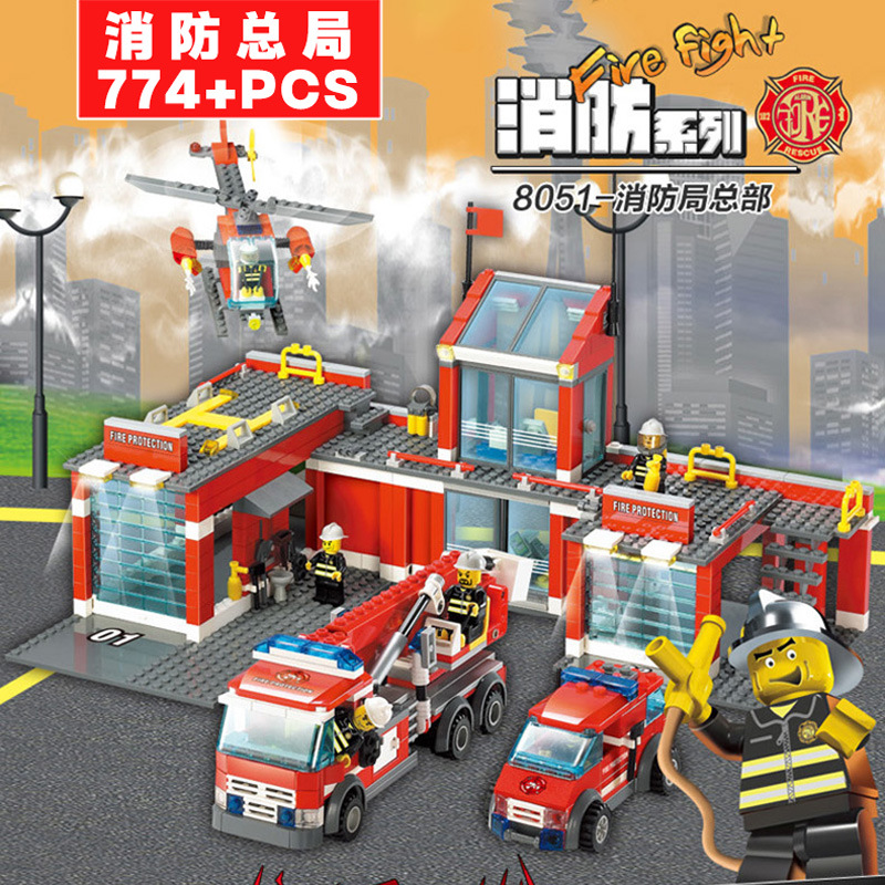 Kaizhi 8051 소방서 시리즈 소방차 사다리 헬리콥터 조립 건물 블록 작은 입자 장난감 도매스토어 가기