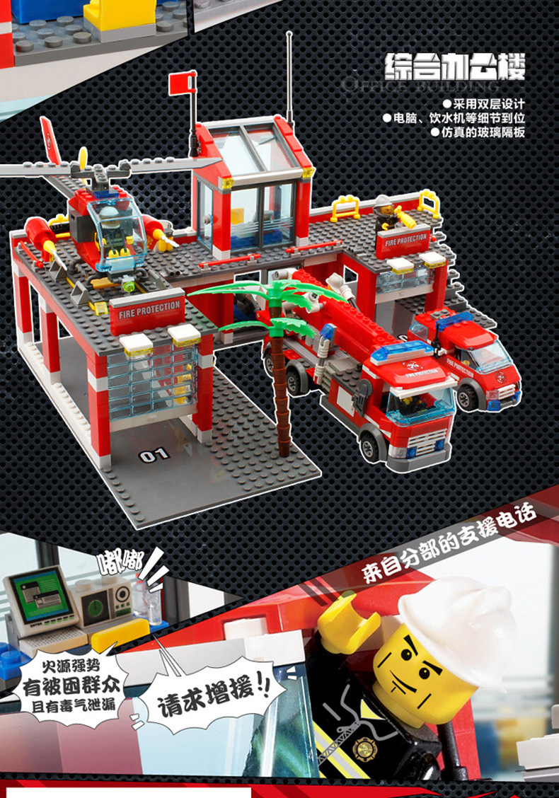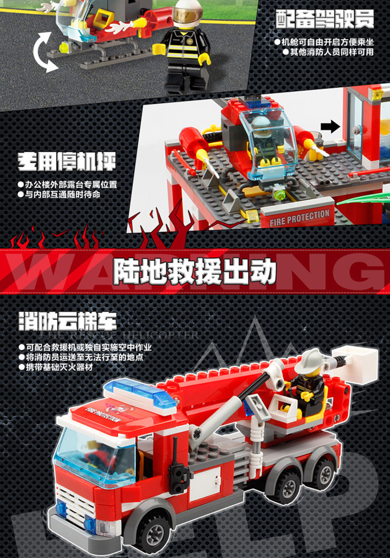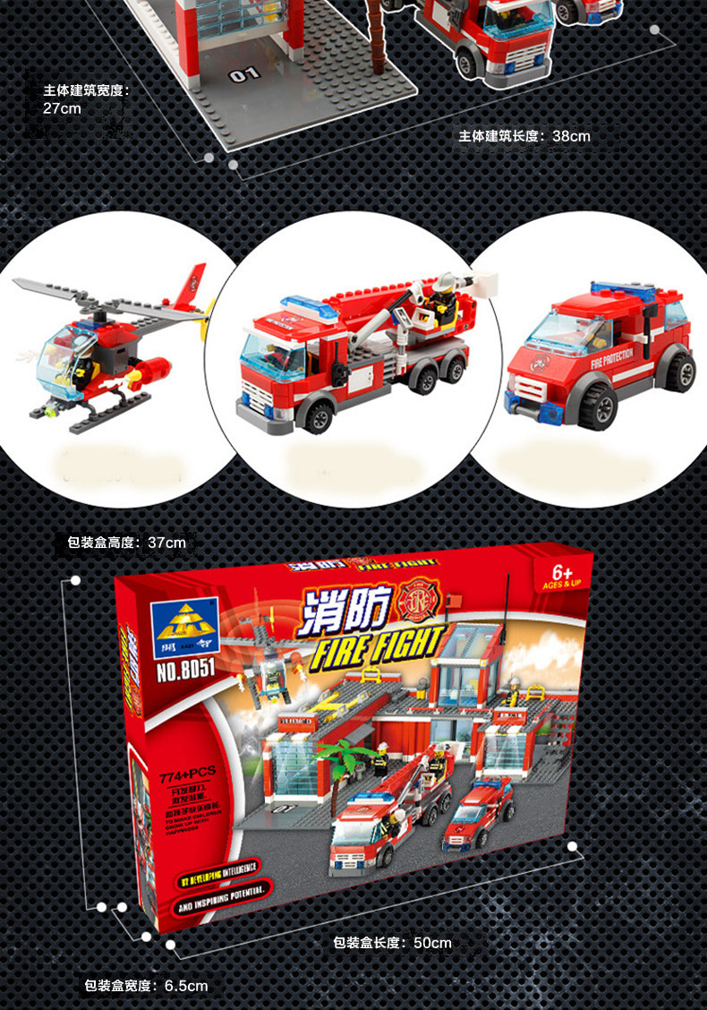 Kaizhi 8051 소방서 시리즈 소방차 사다리 헬리콥터 조립 건물 블록 작은 입자 장난감 도매