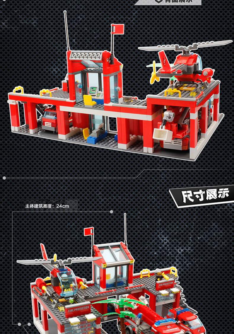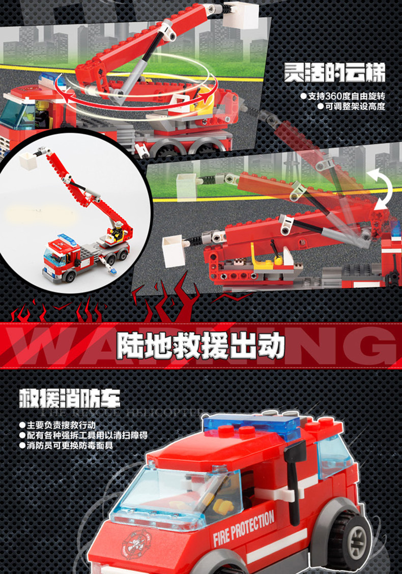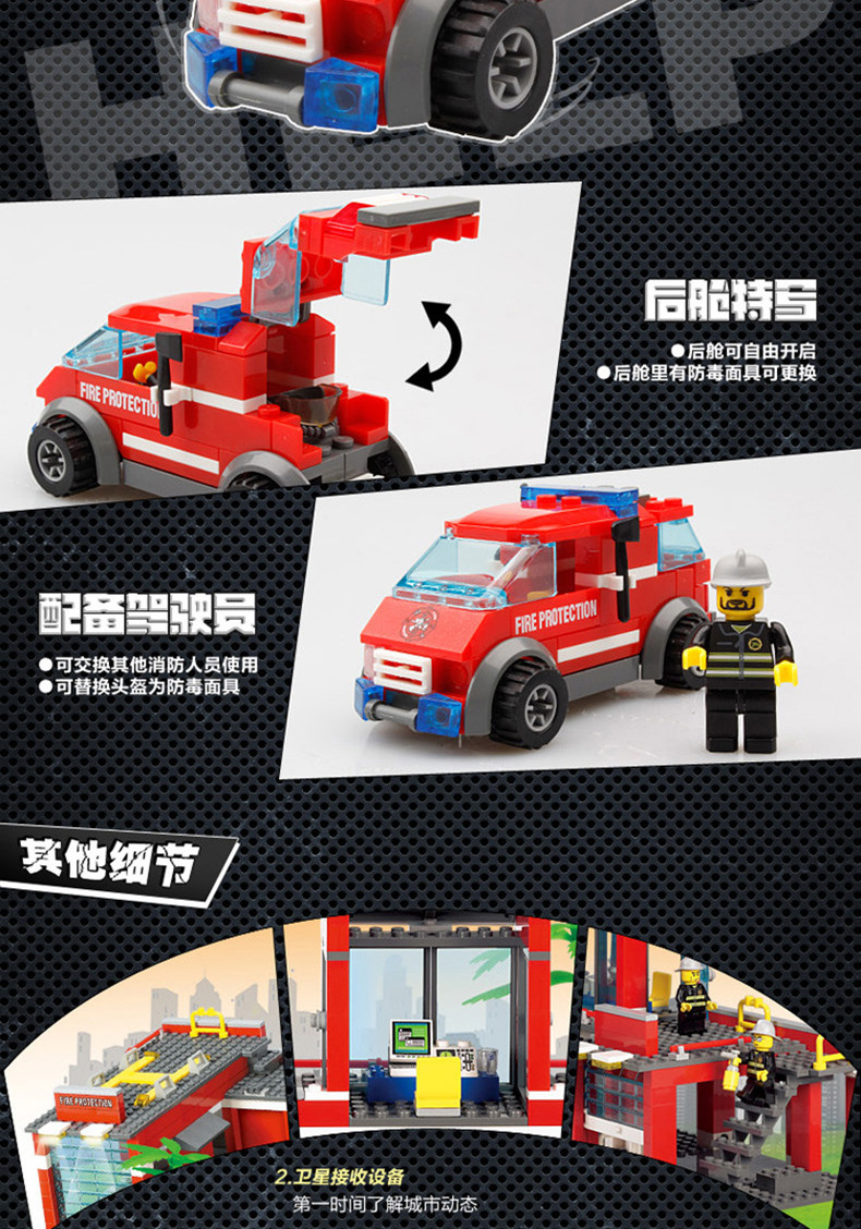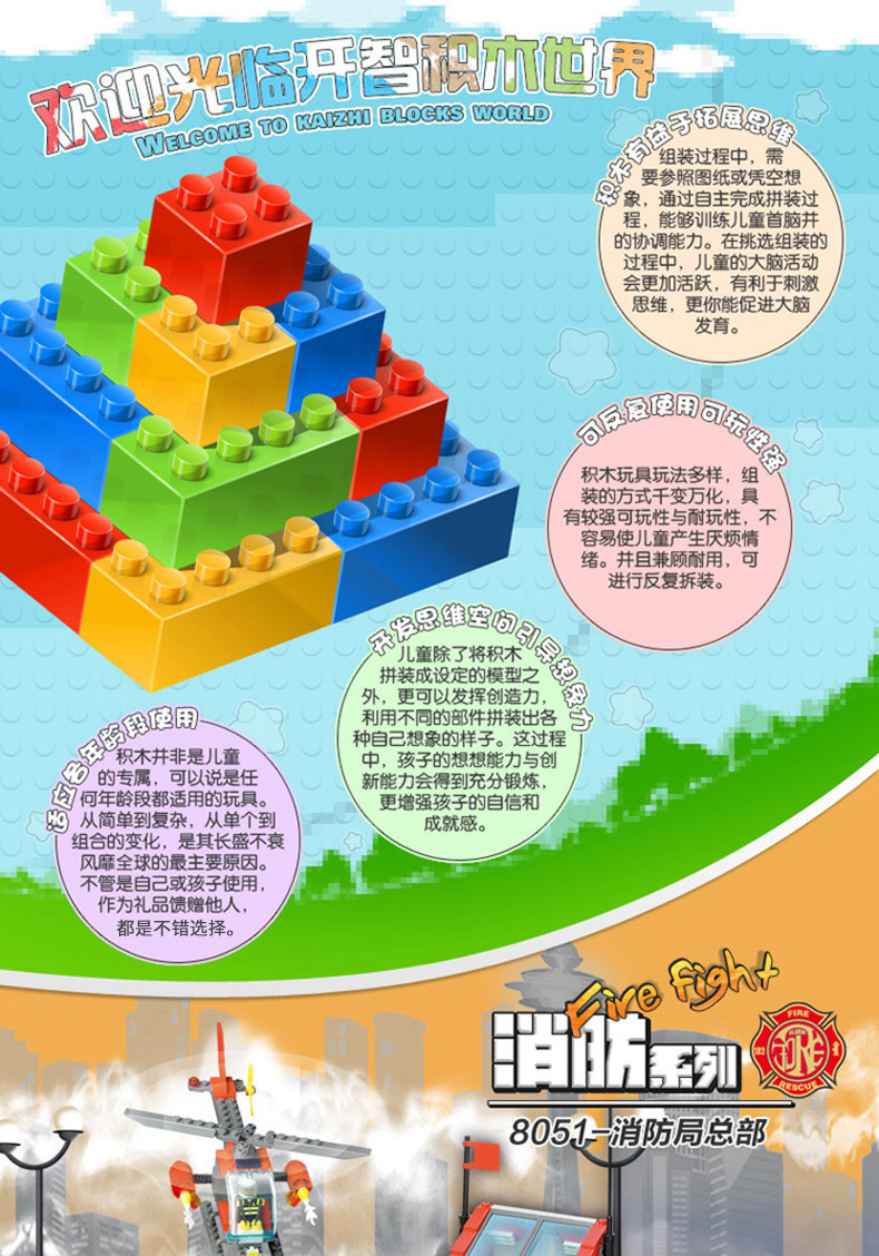 Kaizhi 8051 소방서 시리즈 소방차 사다리 헬리콥터 조립 건물 블록 작은 입자 장난감 도매