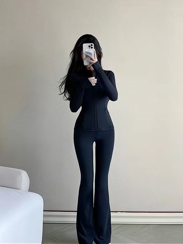 스포츠 슬리밍 높은 탄성 요가 세트 캐주얼 알몸 높은 허리 여성용 플라 바지 세트스토어 가기