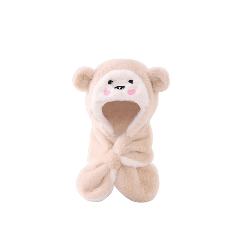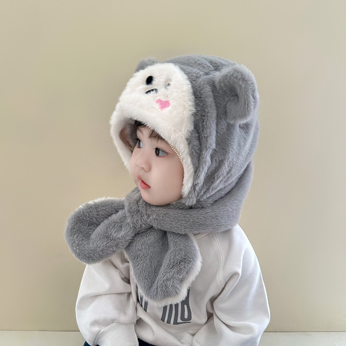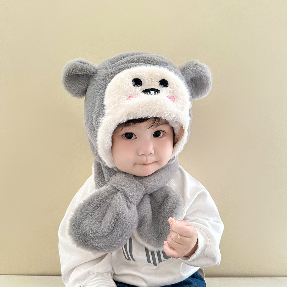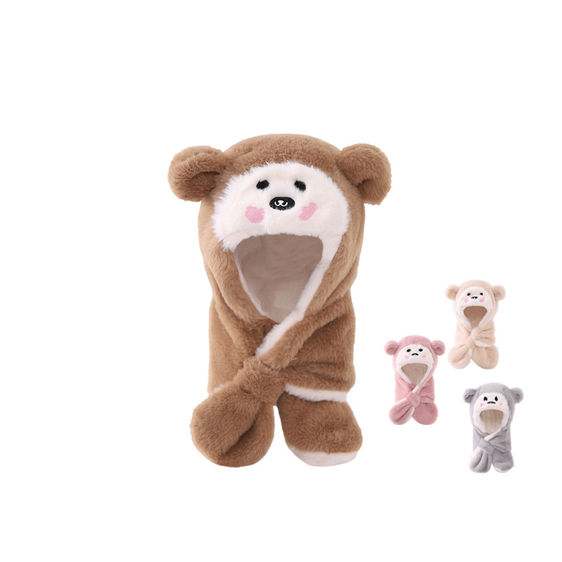 어린이 모자와 스카프 한 두 조각 세트 겨울 기모 소년 소녀를위한 두꺼운 귀 보호 모자 귀여운 곰 방풍 모자