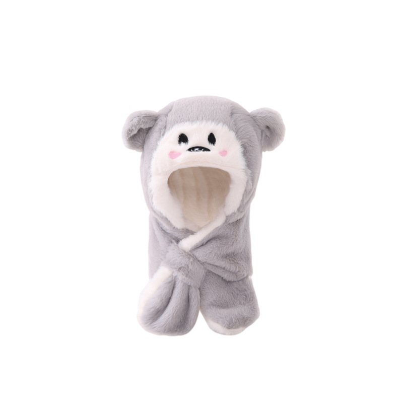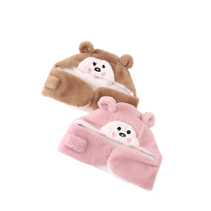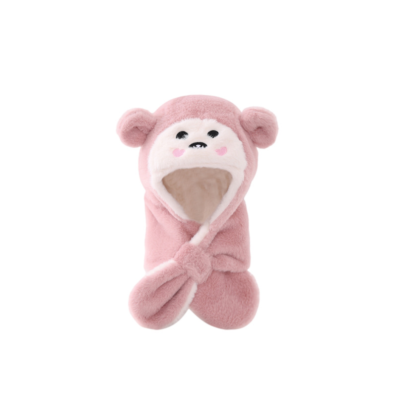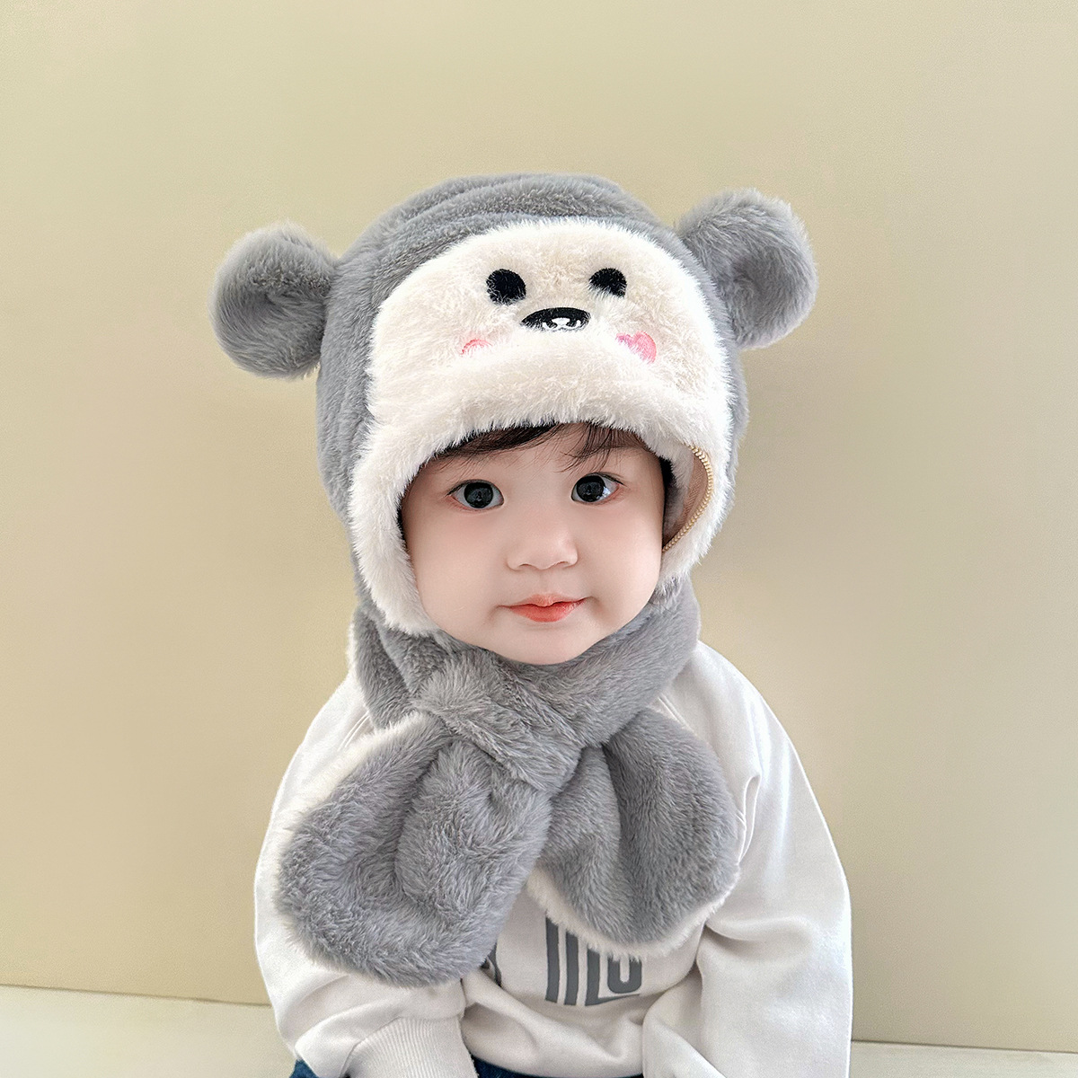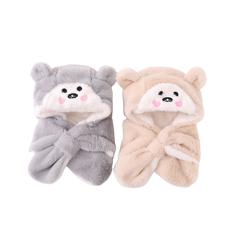 어린이 모자와 스카프 한 두 조각 세트 겨울 기모 소년 소녀를위한 두꺼운 귀 보호 모자 귀여운 곰 방풍 모자