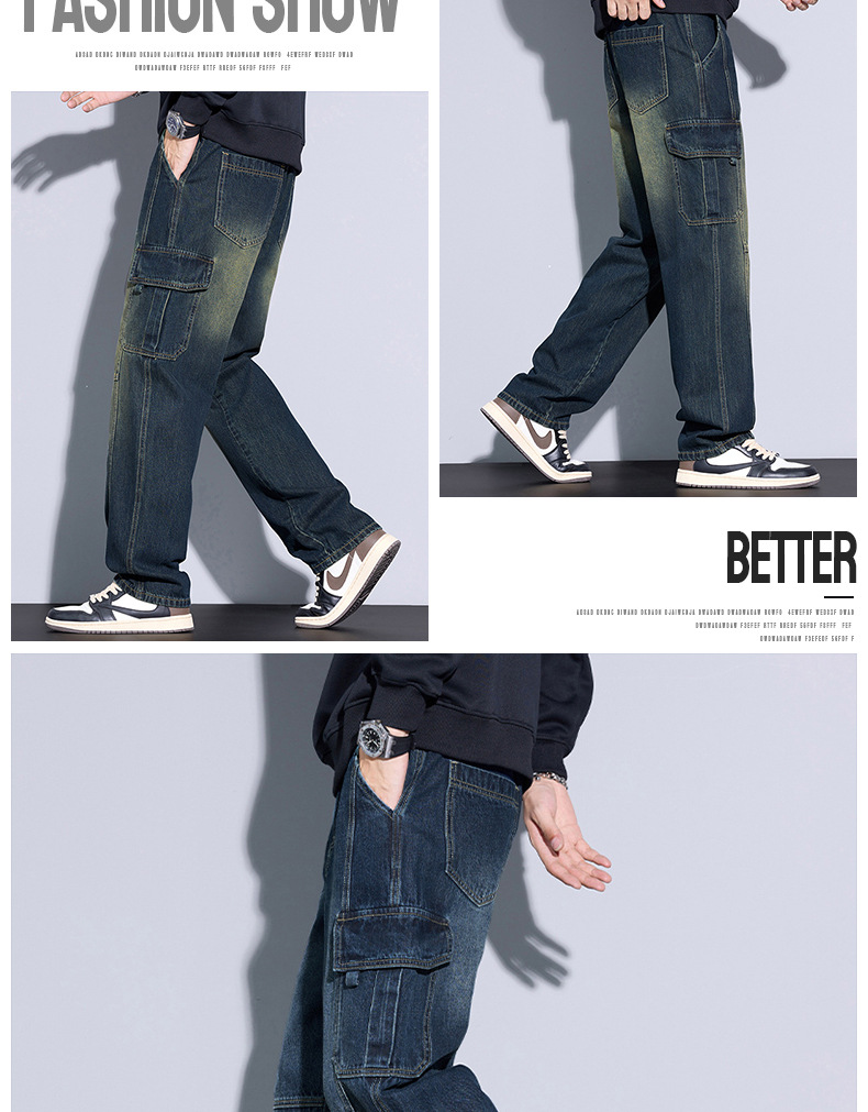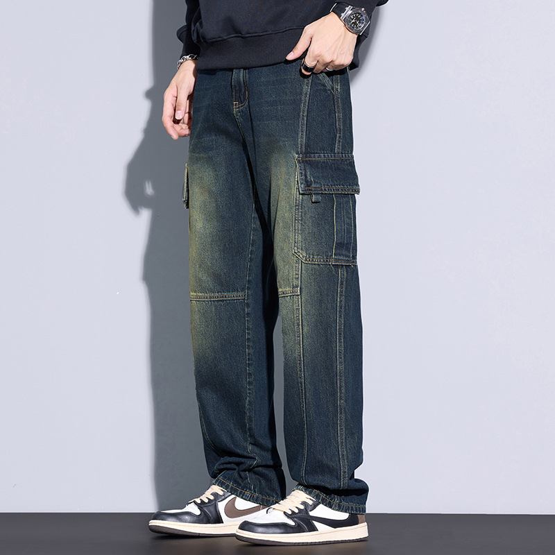 사계절용 아메리칸 스타일 작업복 청바지 남성용 신상 멀티 포켓 레트로 빈티지 루즈핏 트렌디 브랜드 스트레이트 롱 팬츠 하이 스트리트스토어 가기
