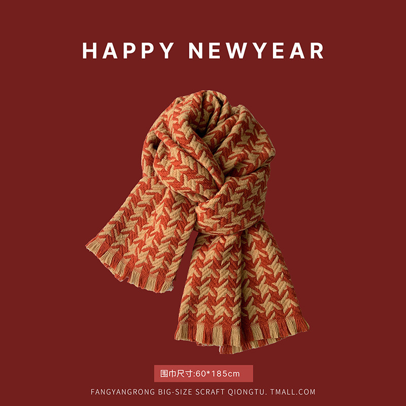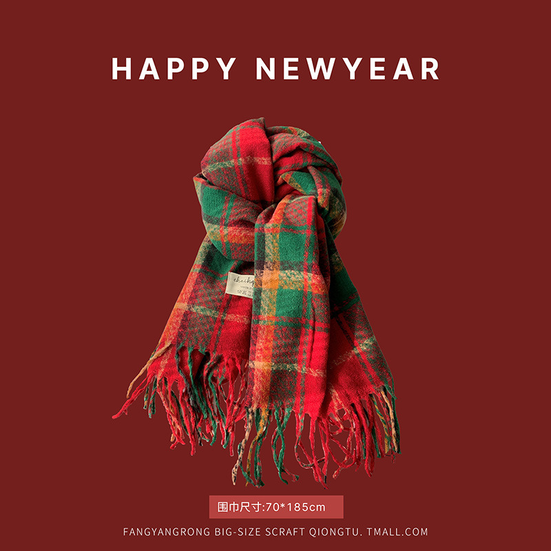 Ankora 레드 스카프 레드 크리스마스 스카프 겨울 폭발 2024 새로운 캐시미어 겨울 따뜻한 도매