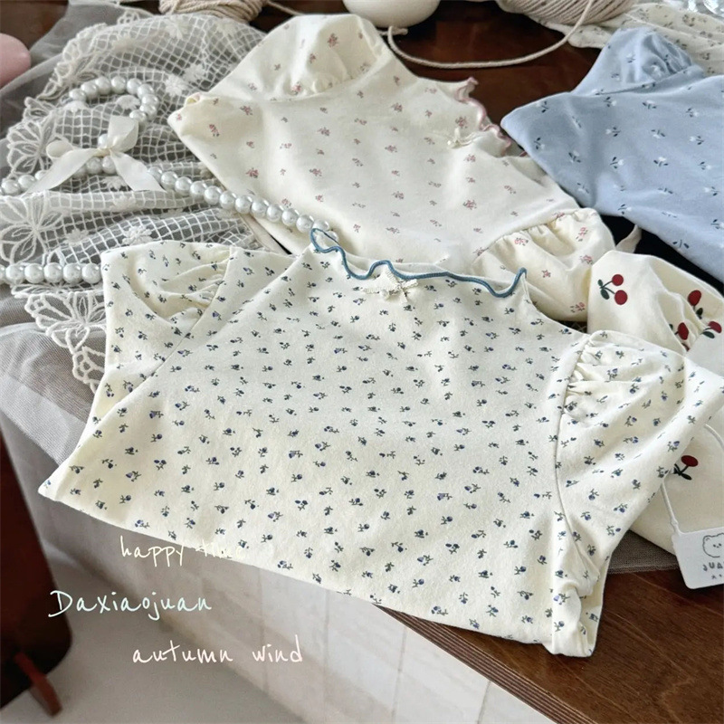 여자 가을 새로운 한국 반 하이 칼라 바닥 셔츠 아기 봄과 가을 기질 꽃 긴 소매 티셔츠 조수 t 도매스토어 가기