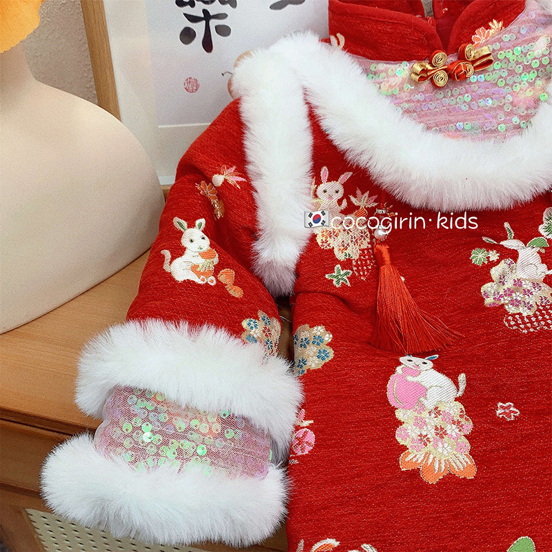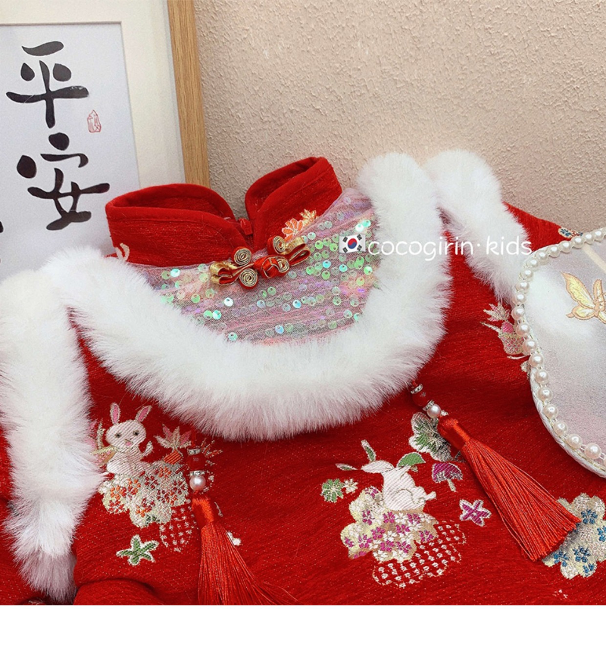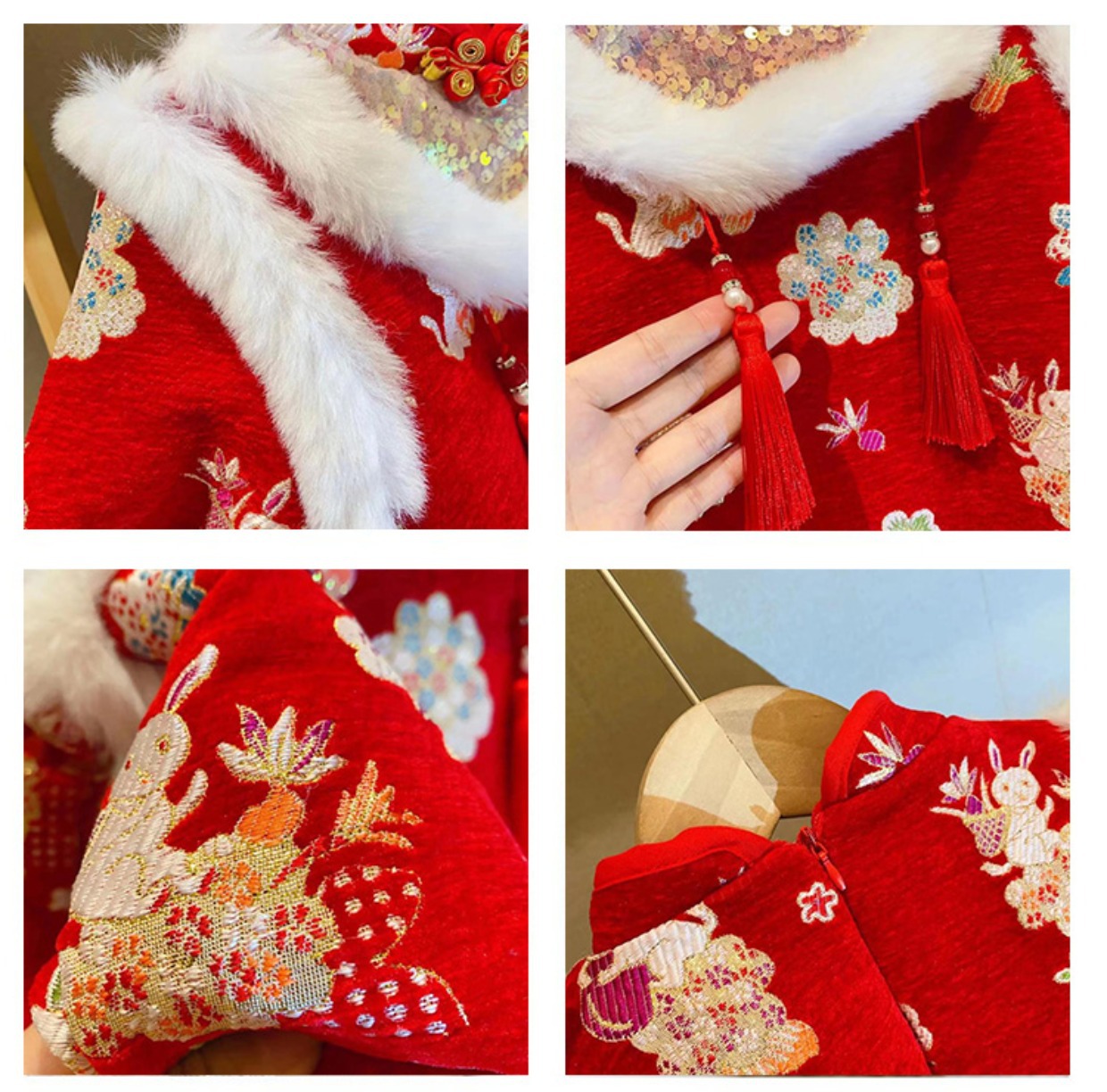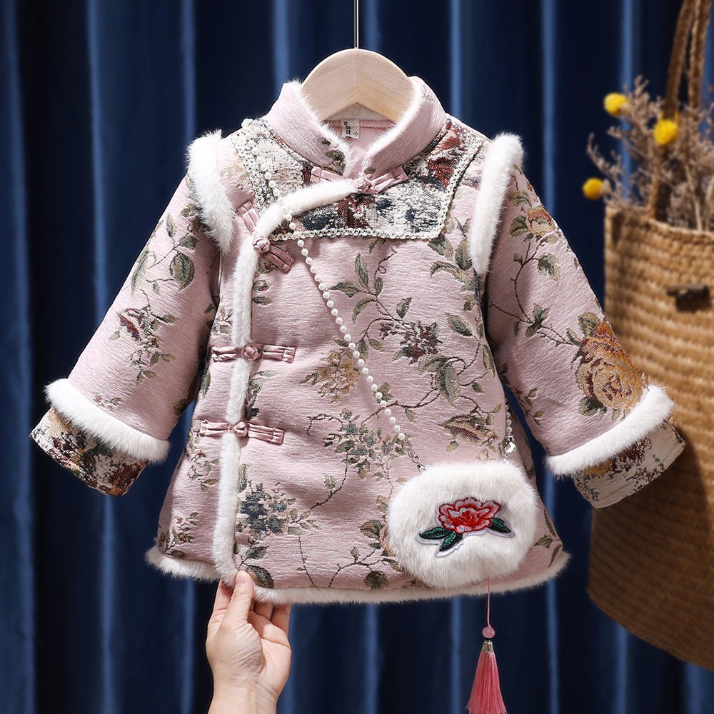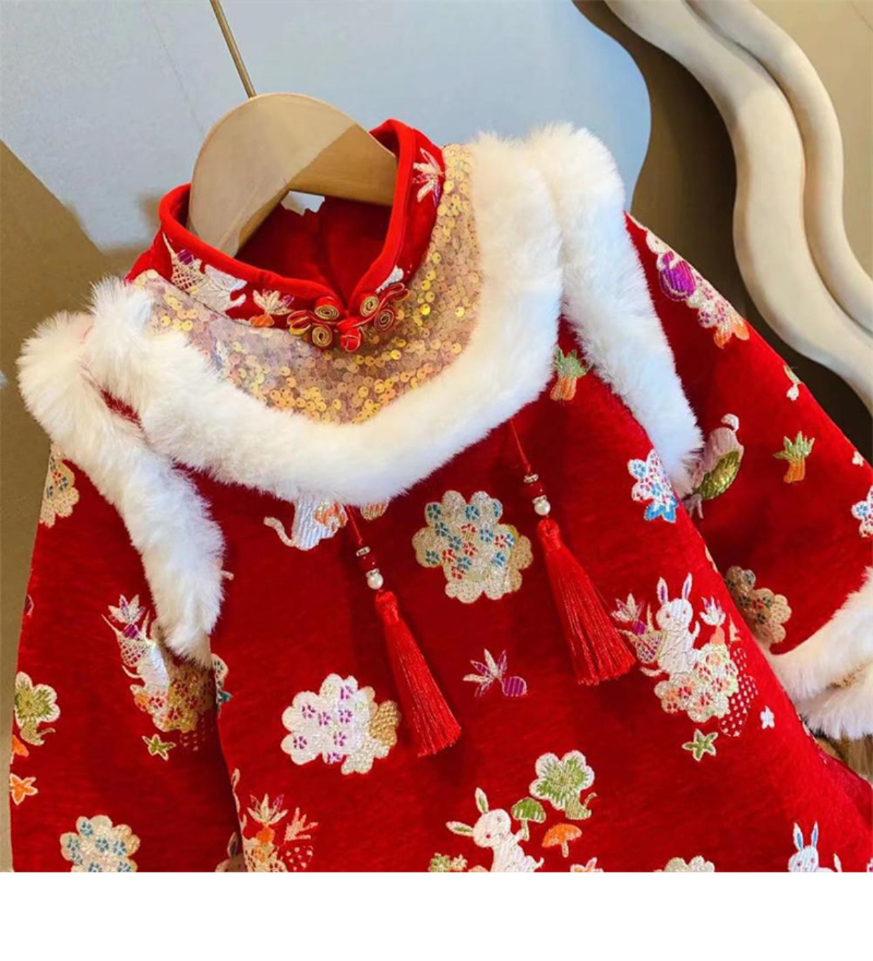 여자 탕 세트 원피스 새 겨울 중국 스타일 세련된 아기 두꺼운 청삼 신년 원피스 도매스토어 가기
