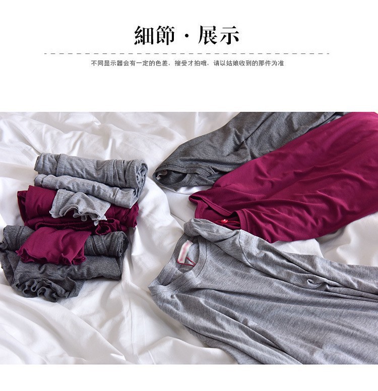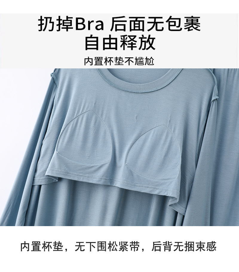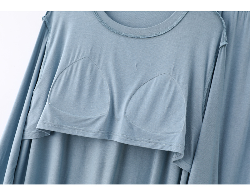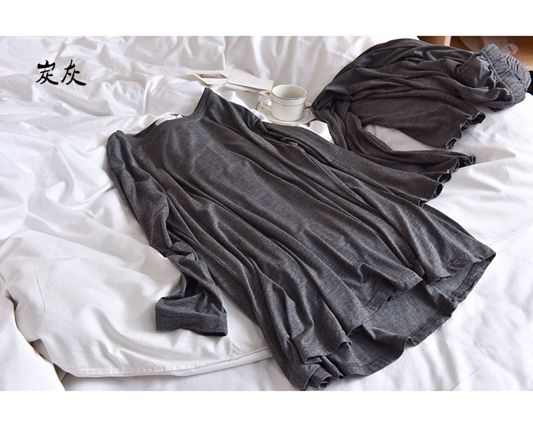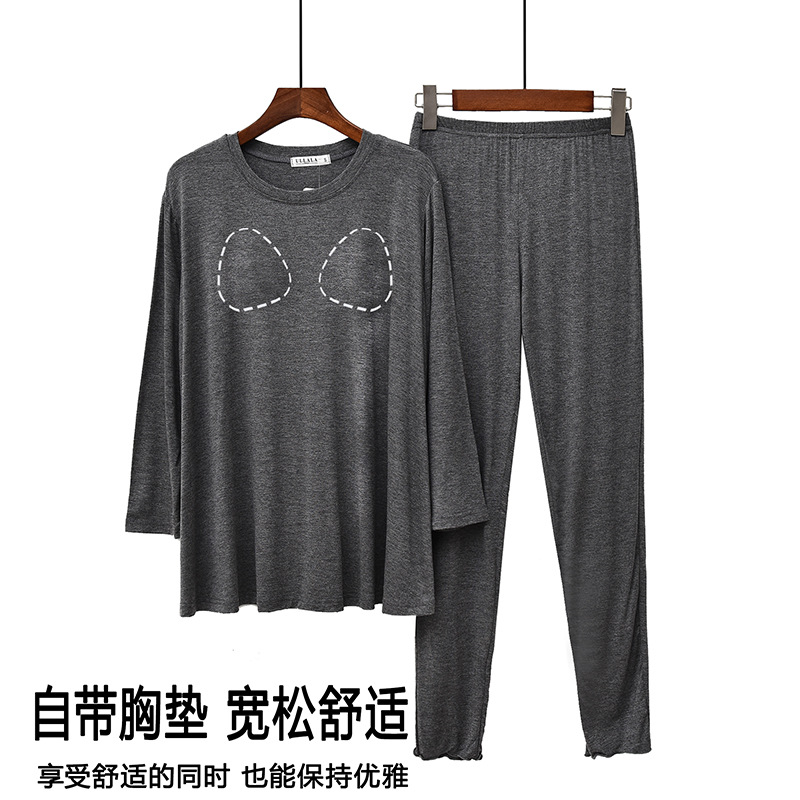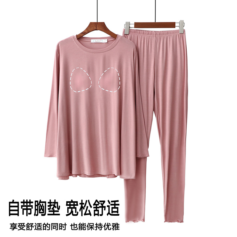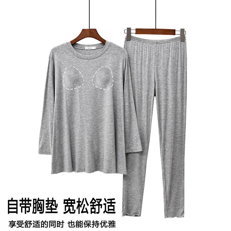가슴 패드와 모달 간단한 순수 컬러 파자마 여성의 봄과 가을 긴 소매 바지 세트 느슨한 캐주얼 풀오버를 착용 할 수 있습니다스토어 가기