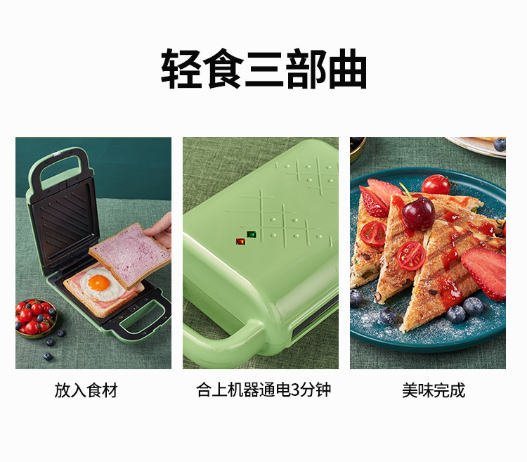 • 녹색 샌드위치 플레이트 + 와플 플레이트 220V 국가 표준