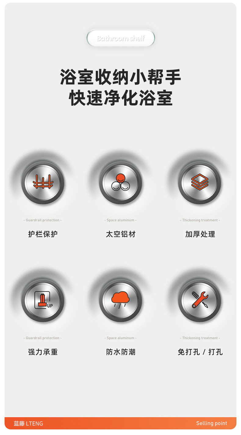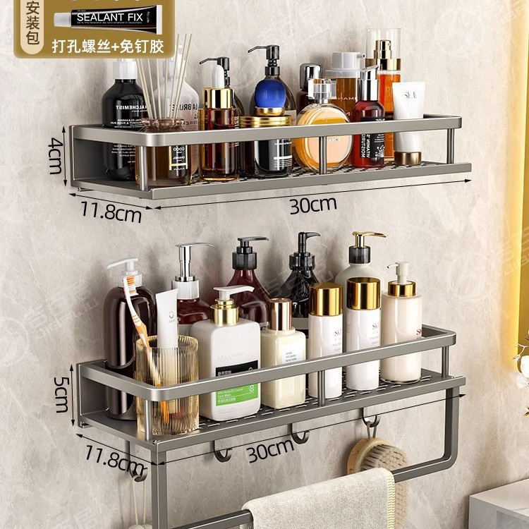 공장 공급 가벼운 고급 욕실 보관 랙 벽걸이 형 욕실 보관 랙 펀치 프리 스토리지 로드 벽걸이스토어 가기