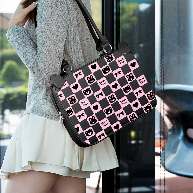• 체커보드 블랙핑크 토끼머리/숄더백 [방수, 충격방지 - 피부친화적이고 손이 조이지 않음]
