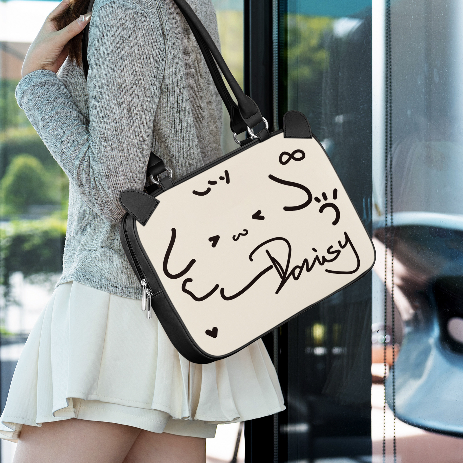 • 알파벳 강아지 낙서/숄더백 [방수, 충격 방지 - 피부 친화적이고 손에 자극 없음]