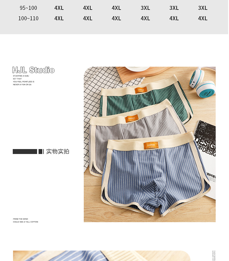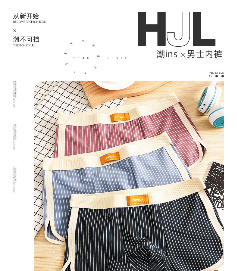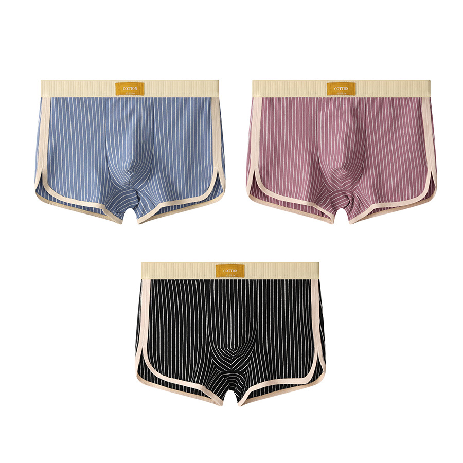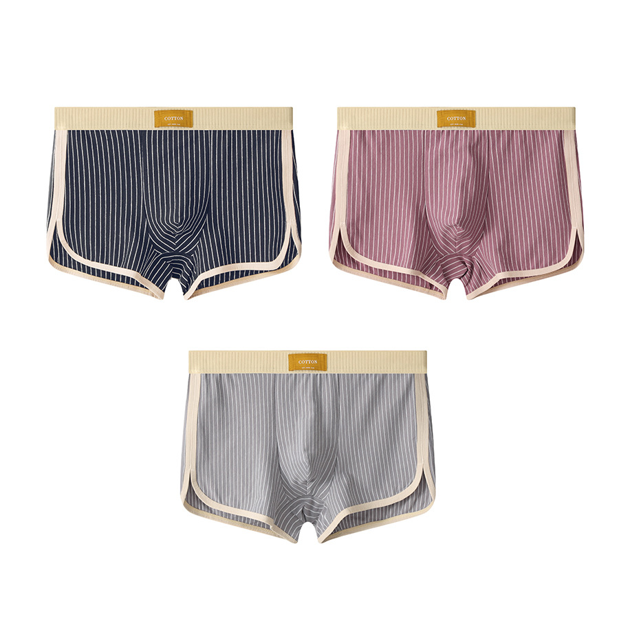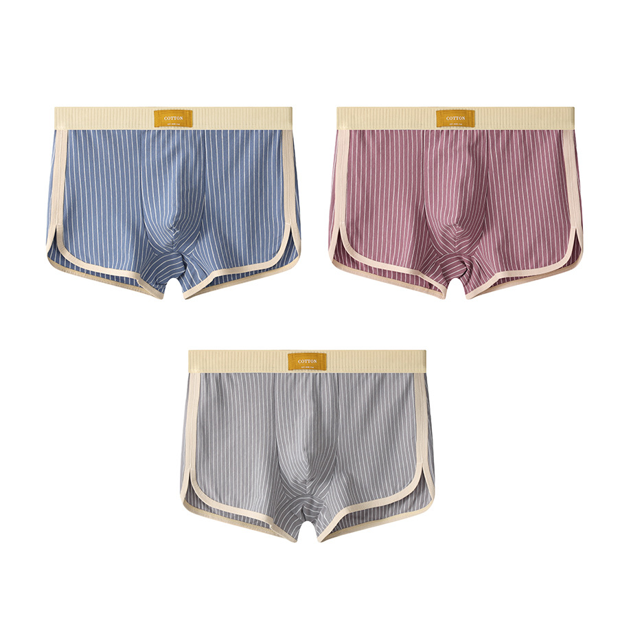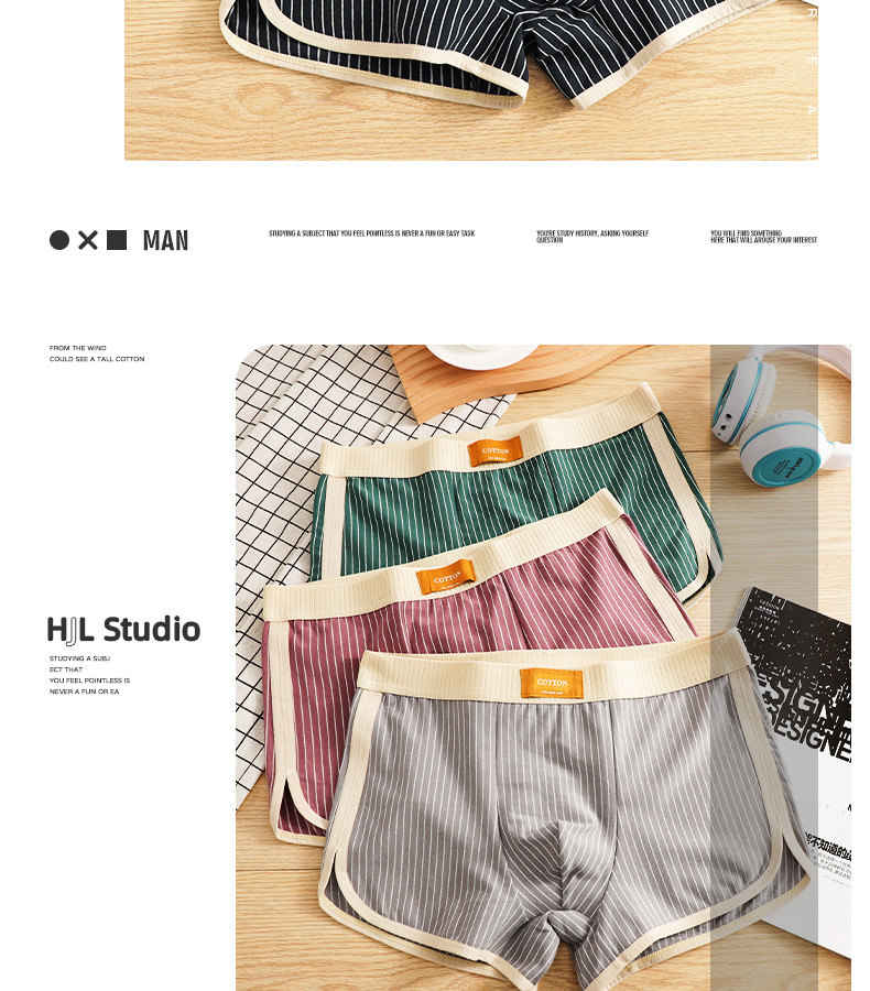 새로운 Huajielong 스트라이프 코튼 남성 속옷 남성 복서 통기성 남성 패션 반바지 한 세대 머리카락스토어 가기