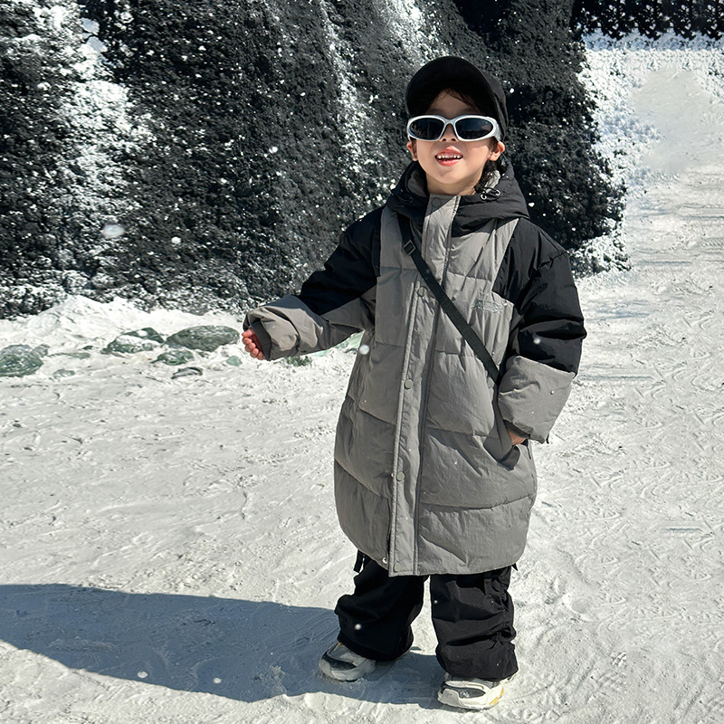 소년 한국 다운 재킷 2024 겨울 새로운 어린이 패션 긴 후드 재킷 어린이 깊은 겨울 옷스토어 가기