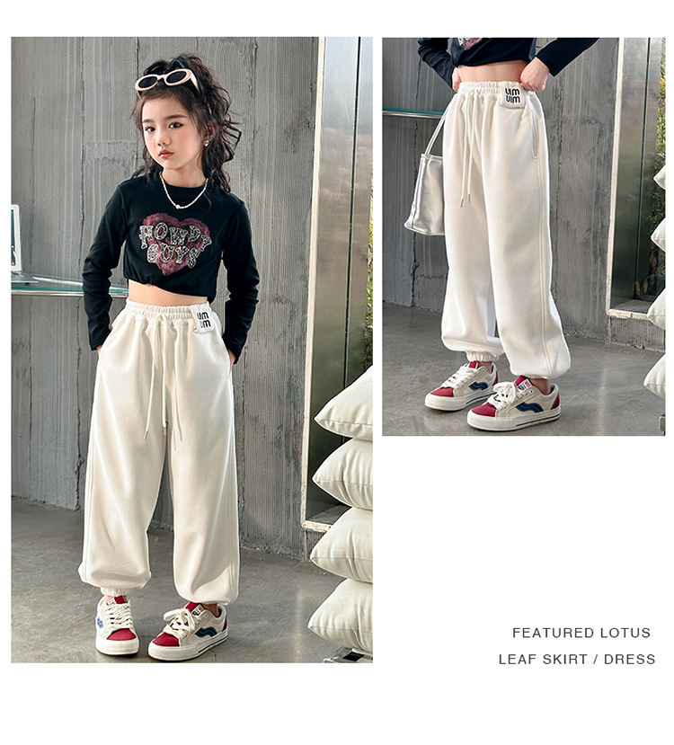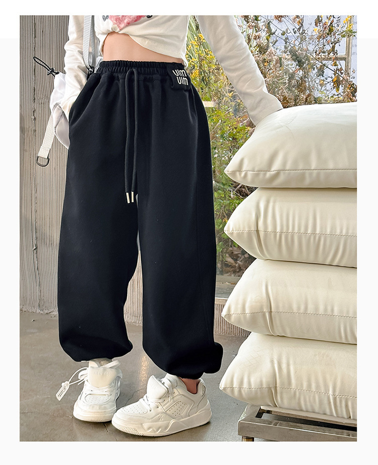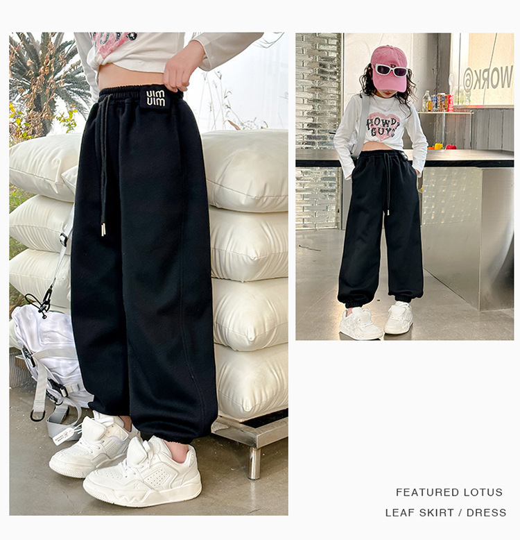 소녀 바지 가을과 겨울 2024 새로운 기모 가을 어린이 바지 서양식 어린이 스포츠 바지 큰 어린이 바지