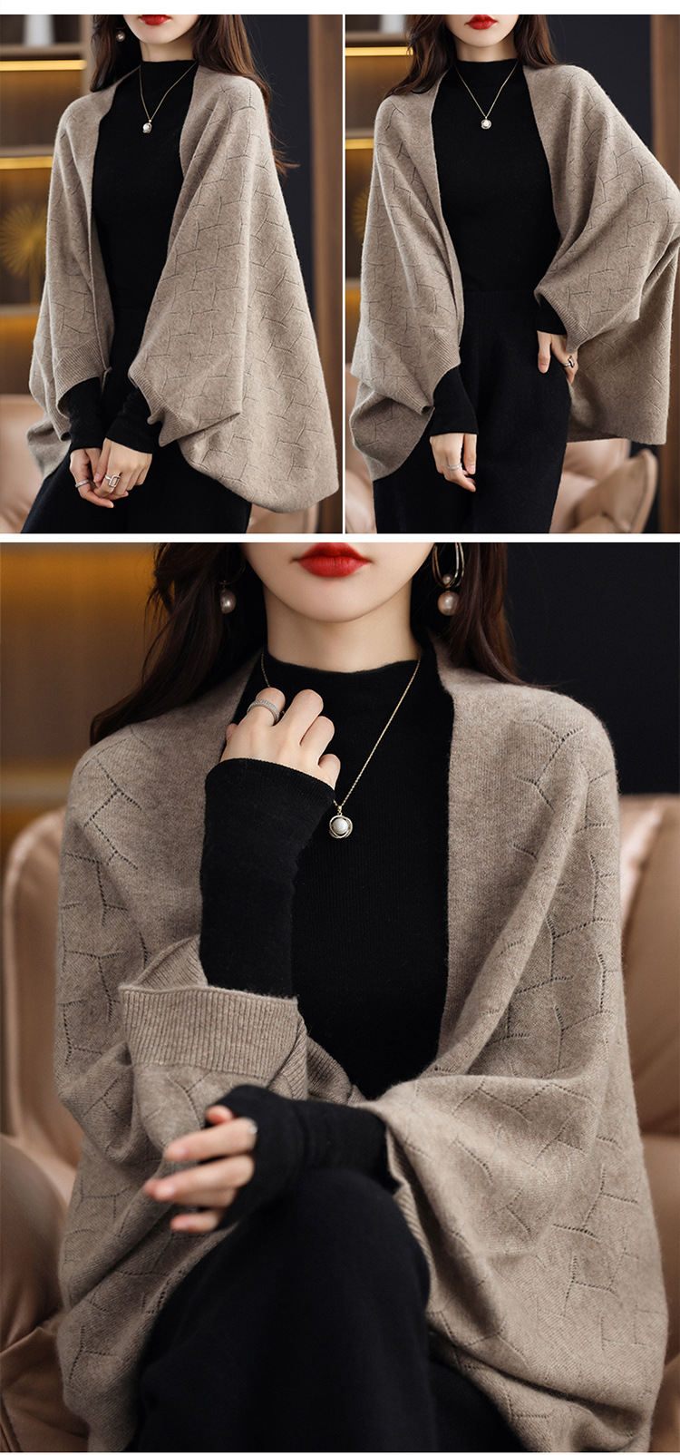 브랜드 여성 가을 겨울 캐시미어 니트 숄 탑 스웨터 재킷 도매스토어 가기