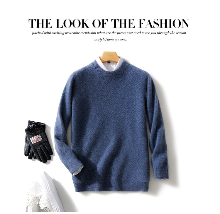 羊毛衫男青年宽松圆领毛衣24秋冬新款商务休闲加厚针织打底羊绒衫