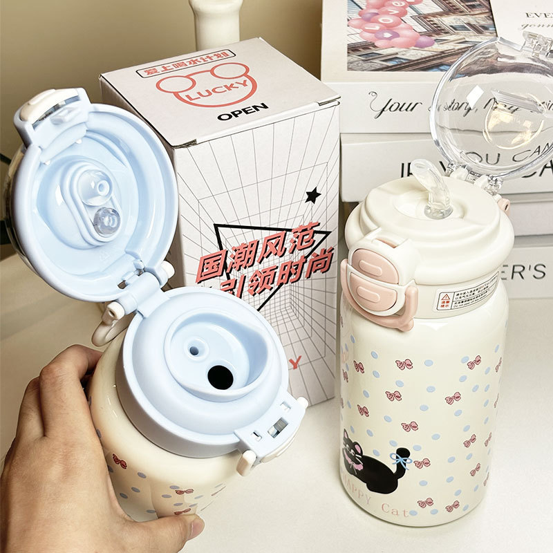 Simple Planet 더블 드링킹 보온병 컵 316 스테인레스 스틸 귀여운 고급스러운 소녀 학생 밀짚 컵 어린이 물 컵스토어 가기