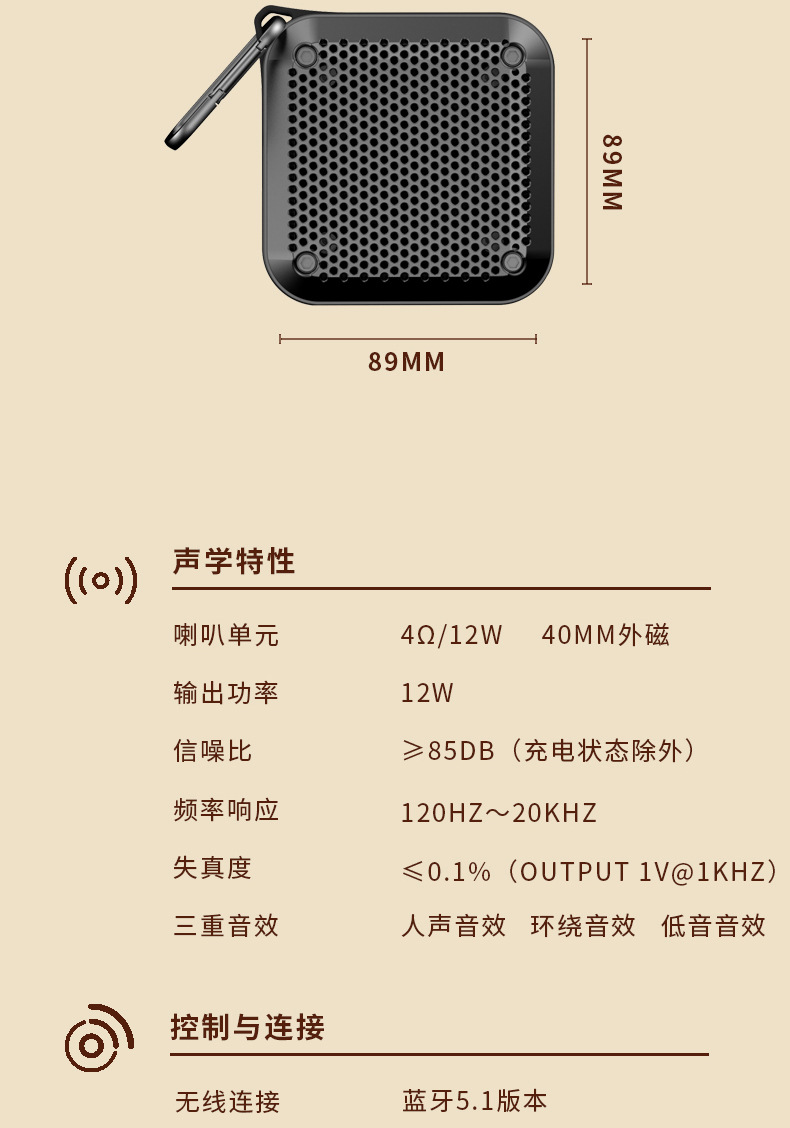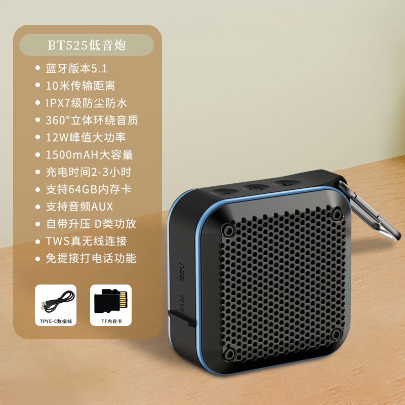 독일 무거운 대포 휴대용 블루투스 스피커 무선 휴대용 무거운 서브 우퍼 TWS 상호 연결된 스퀘어 미니 사운드