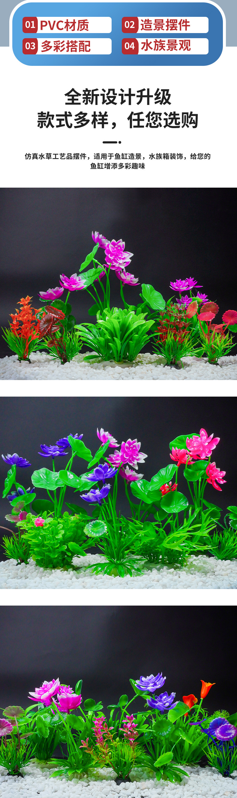 물고기 탱크 풍경 꽃 잔디 장면 시뮬레이션 물 잔디 풍경 수족관 연꽃 잔디 가짜 꽃 장식품