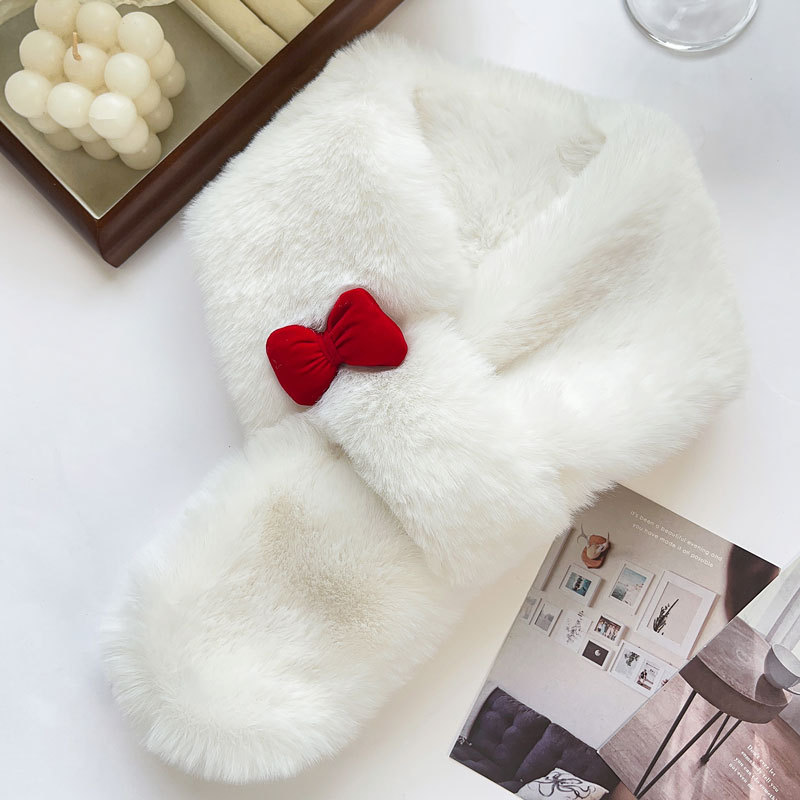 새해 크리스마스 마오 마오 마오 스카프 여성의 겨울 2024 새로운 흰색 봉제 스카프 귀여운 따뜻한 목 보호 고급 감각
