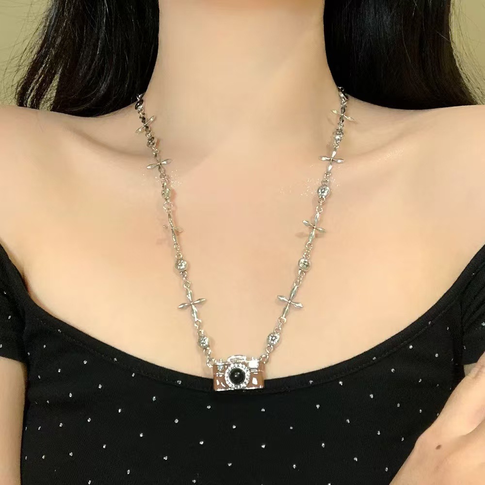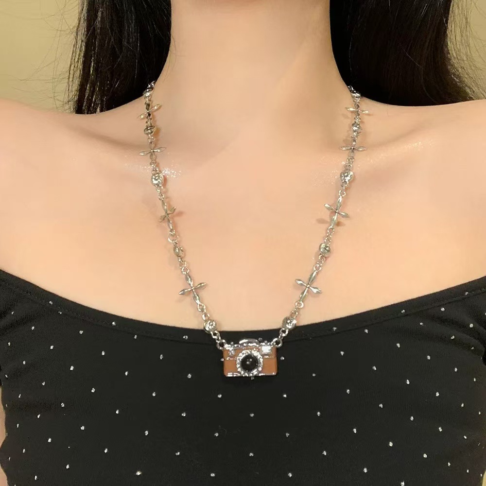 남성과 여성을위한 새로운 다크 브라운 레트로 카메라 펜던트 목걸이 달콤한 쿨 스타일 틈새 스웨터 체인 가을과 겨울 하이 엔드 센스 액세서리스토어 가기
