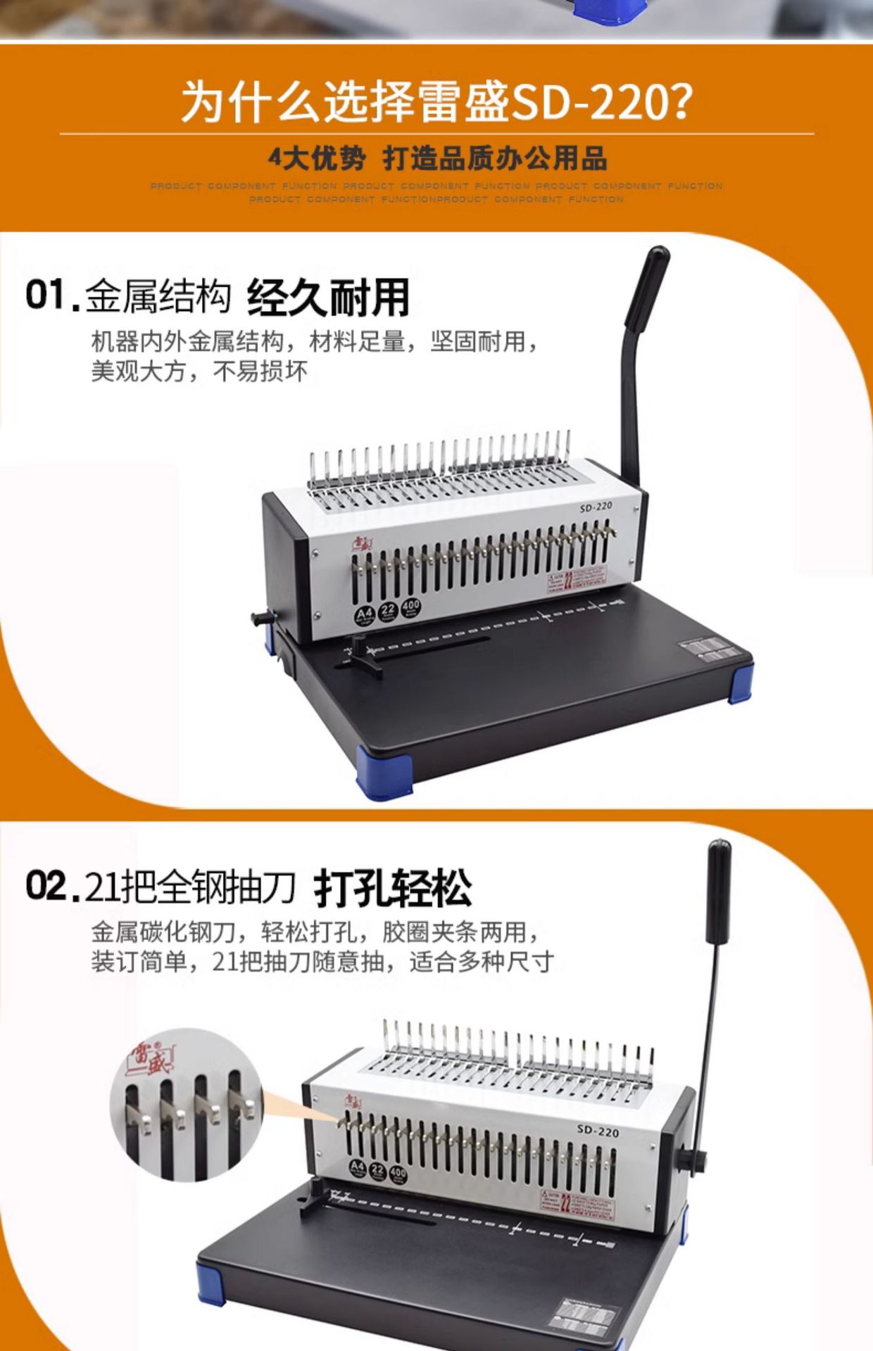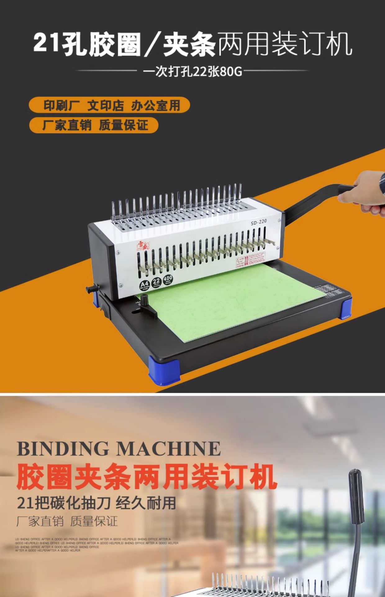 레이쇼 제본기, 클립홀더, 10홀 문서 및 계약 제본기, 21홀 콤형 고무링 입찰서 천공기