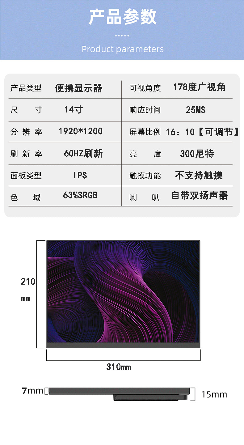 14 인치 휴대용 디스플레이 스탠드 1920*1200 해상도 서브 스크린 확장 지원 일선 통신 기능스토어 가기