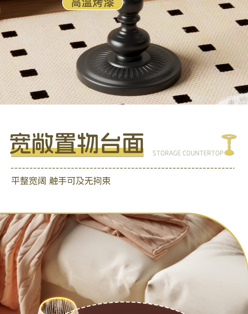 미국 레트로 거실 사이드 테이블 소파 사이드 캐비닛 라이트 럭셔리 작은 커피 테이블 창조적 인 침대 테이블 블랙 작은 라운드 테이블 도매스토어 가기