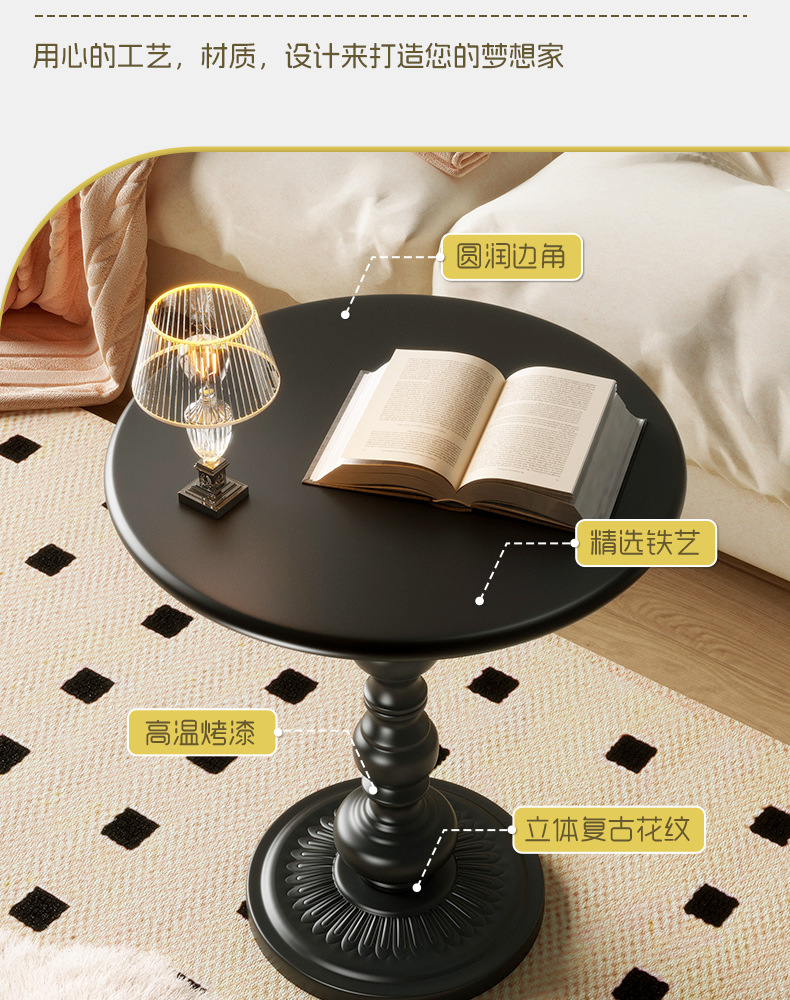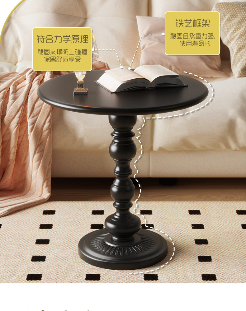 미국 레트로 거실 사이드 테이블 소파 사이드 캐비닛 라이트 럭셔리 작은 커피 테이블 창조적 인 침대 테이블 블랙 작은 라운드 테이블 도매