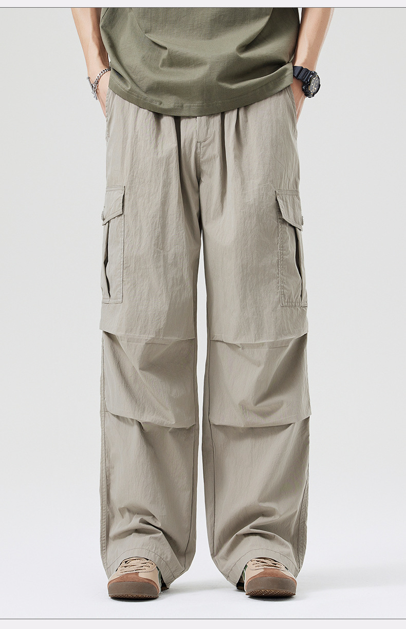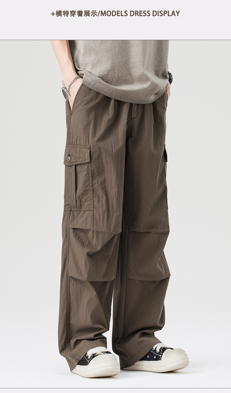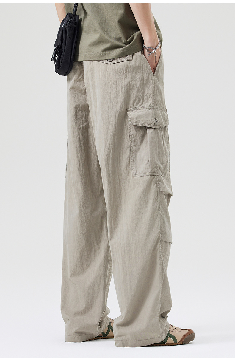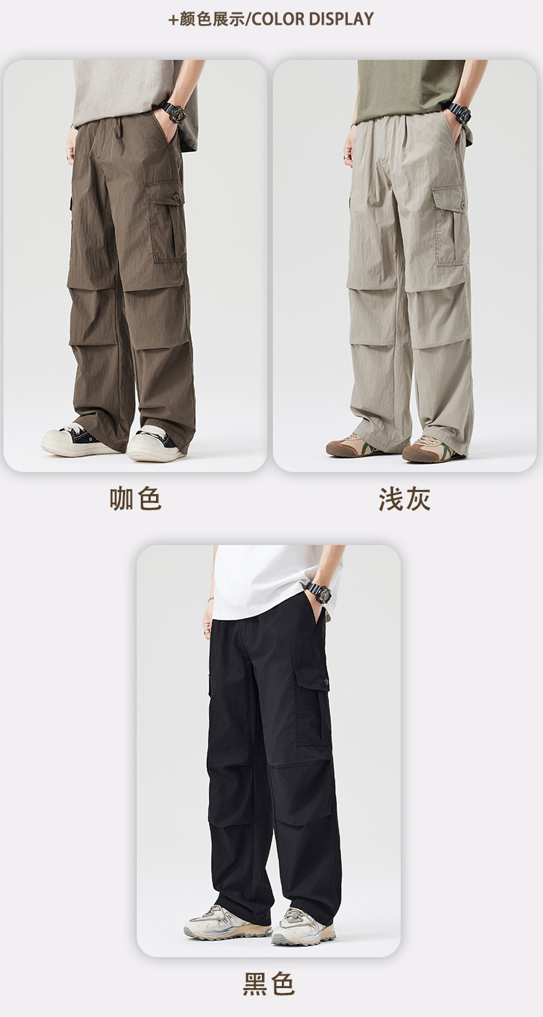 Muqiu 남성복 | 여름 얇은 얼음 실크 속건 캐주얼 바지 남성 야외 루즈 스트레이트 파라트리퍼 와이드 레그 오버올스토어 가기