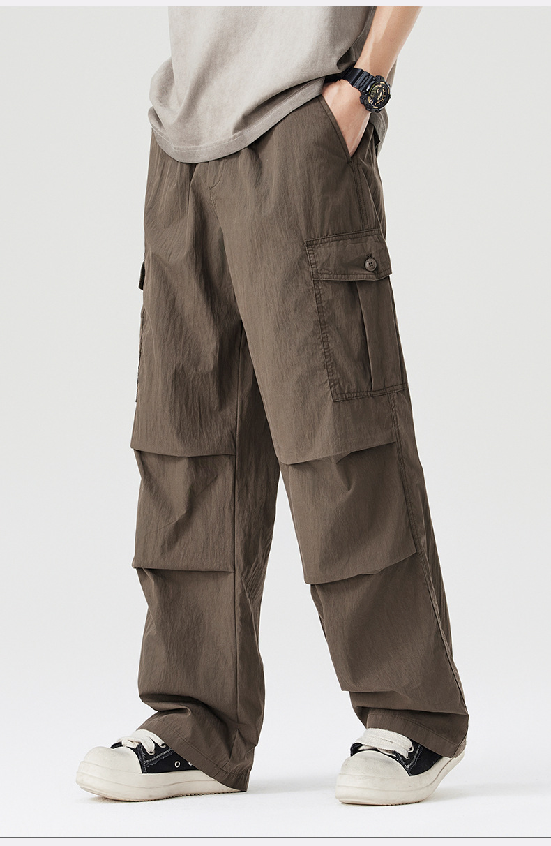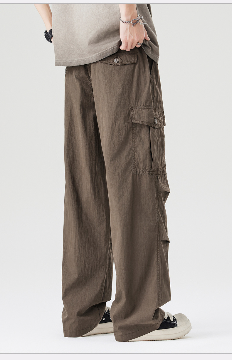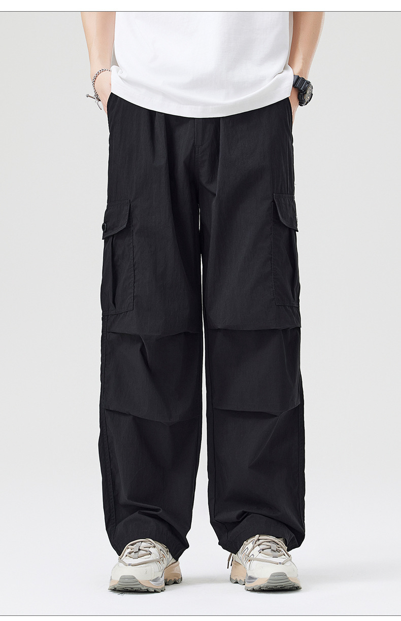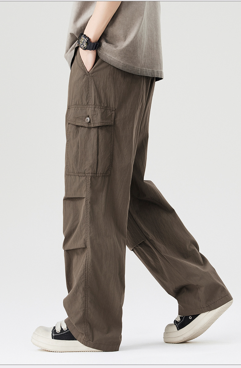 Muqiu 남성복 | 여름 얇은 얼음 실크 속건 캐주얼 바지 남성 야외 루즈 스트레이트 파라트리퍼 와이드 레그 오버올스토어 가기