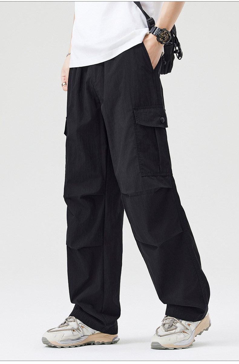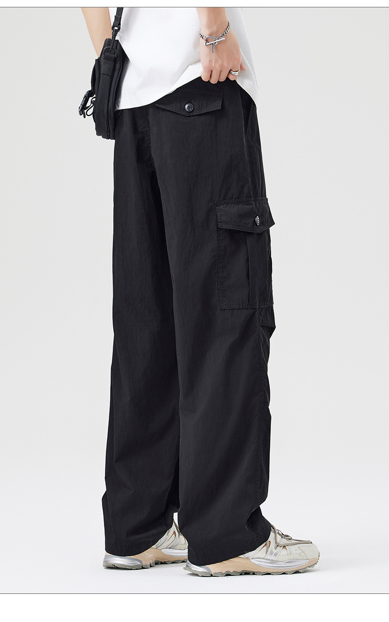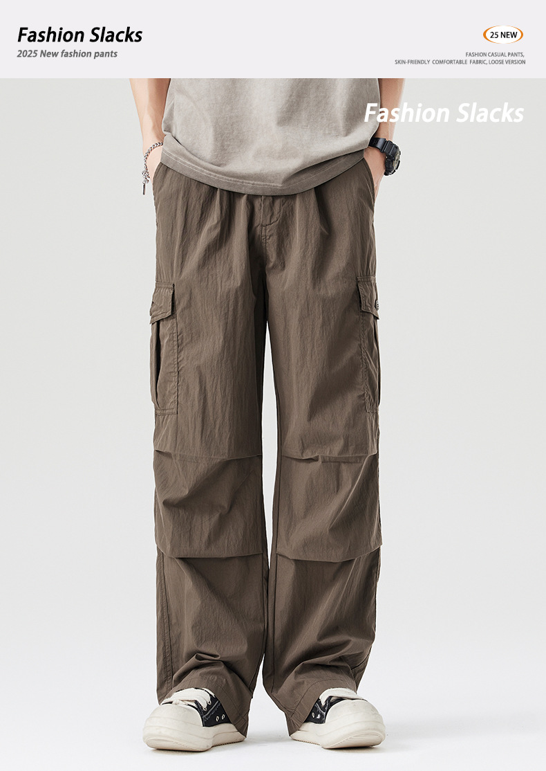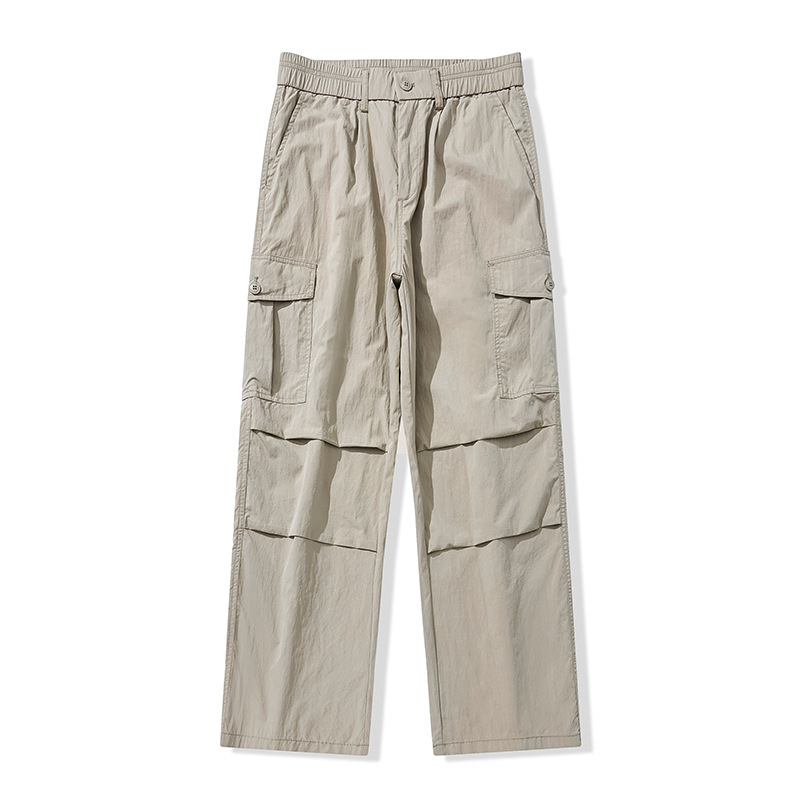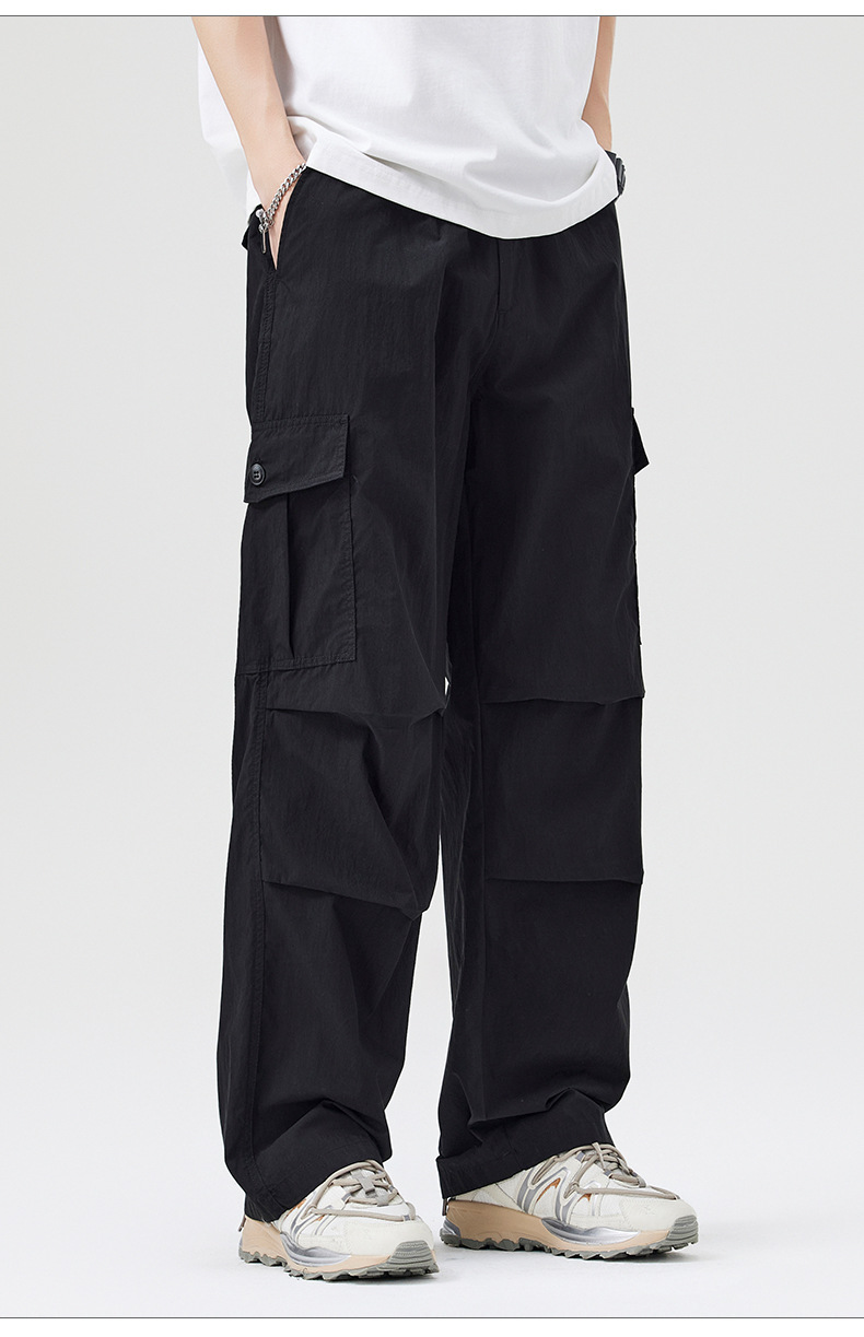 Muqiu 남성복 | 여름 얇은 얼음 실크 속건 캐주얼 바지 남성 야외 루즈 스트레이트 파라트리퍼 와이드 레그 오버올스토어 가기