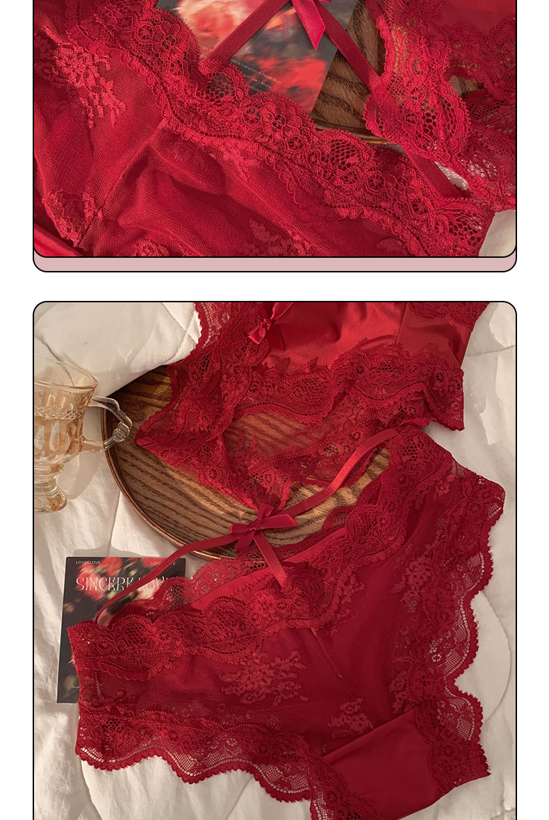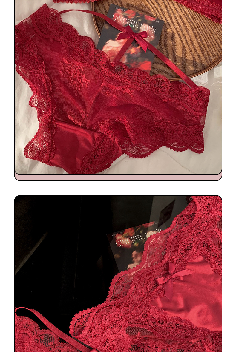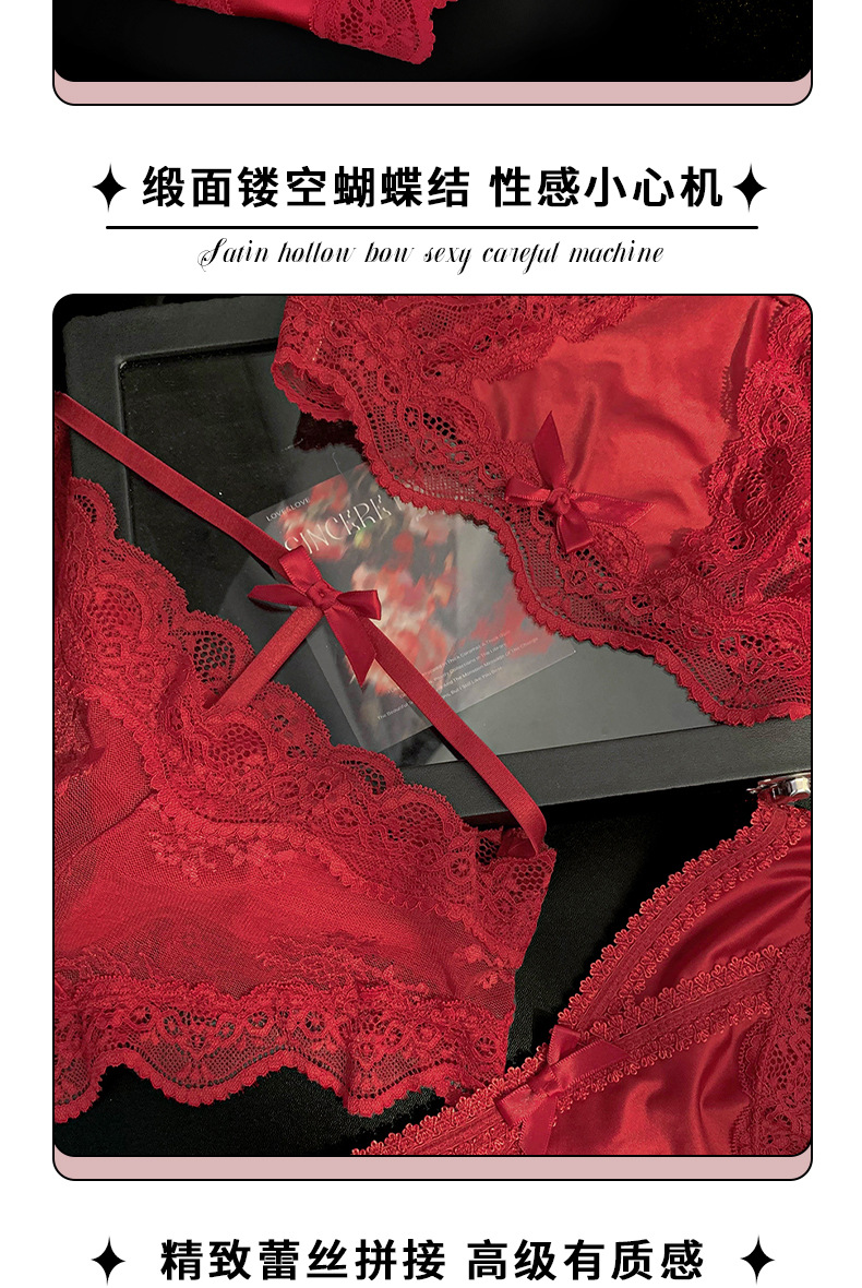 얽힌 유혹 ~ 소녀의 탄생 연도 빨간색 섹시한 레이스 업 중공 여성의 순수한 정욕 스타일 속옷 여성 2025 새로운 스타일