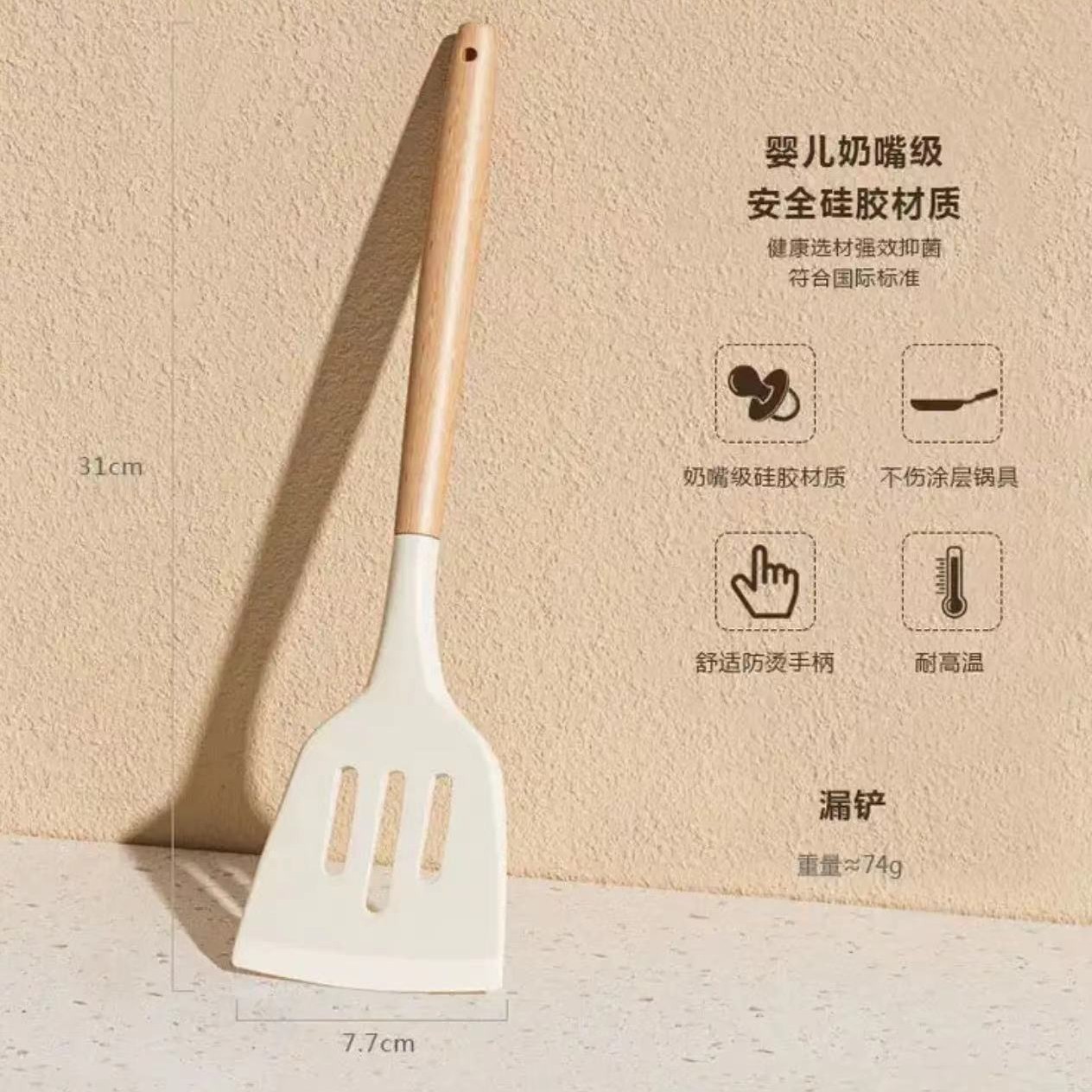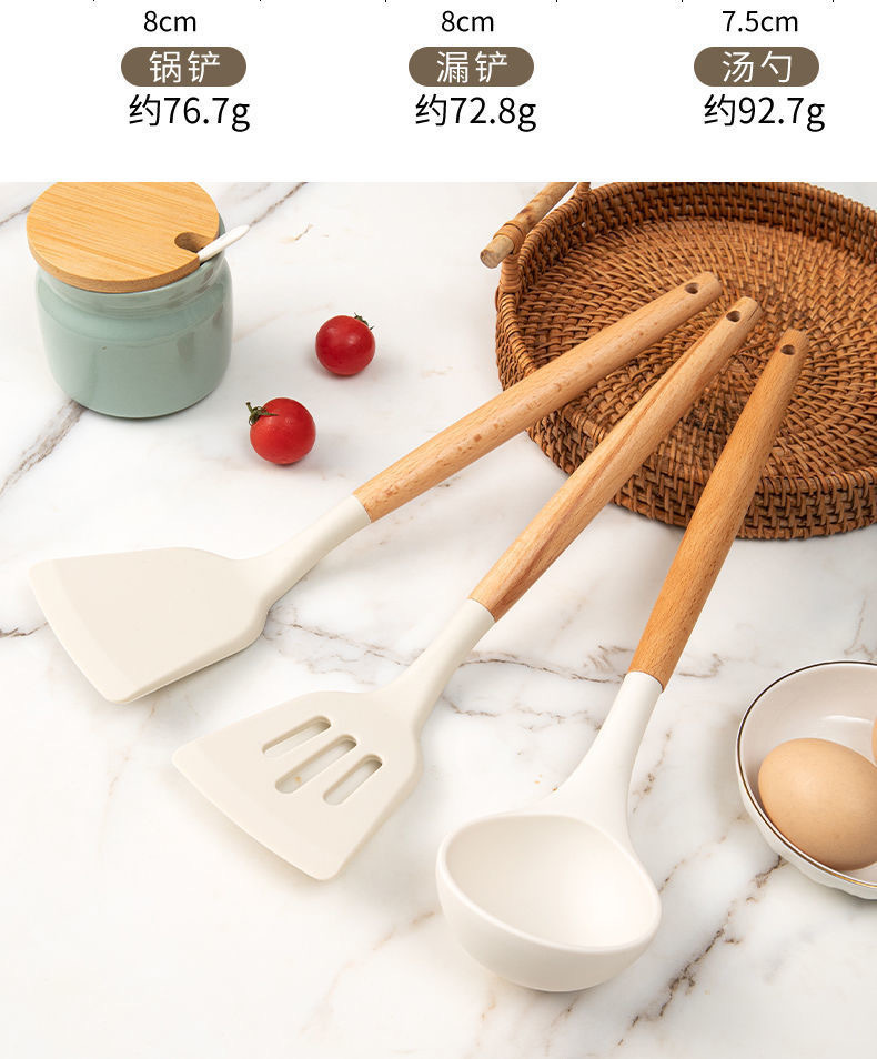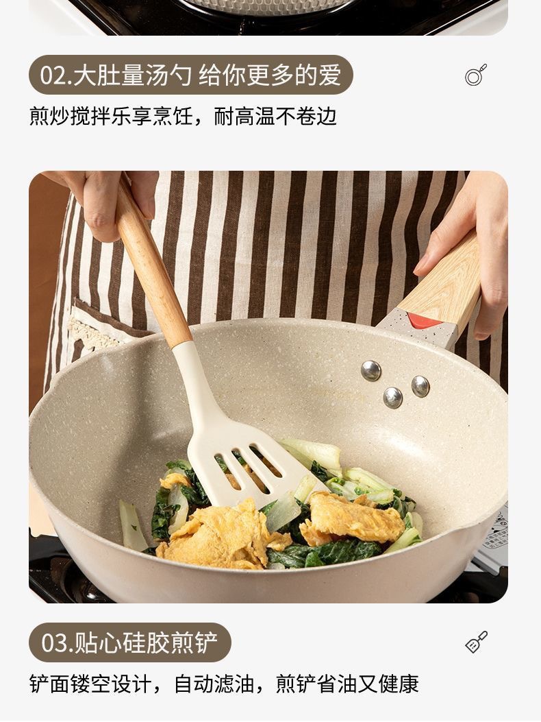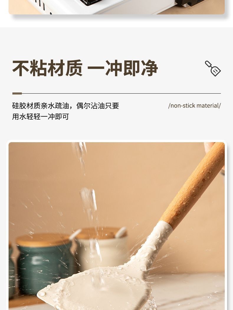 식품 등급 실리콘 주걱 수프 스푼 가정용 볶음 주걱 숟가락 주방 비 스틱 팬 나무 손잡이 주걱 튀김 주걱