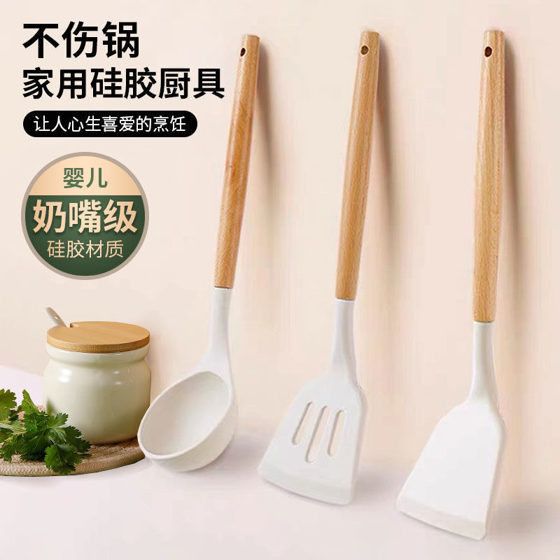 식품 등급 실리콘 주걱 수프 스푼 가정용 볶음 주걱 숟가락 주방 비 스틱 팬 나무 손잡이 주걱 튀김 주걱스토어 가기