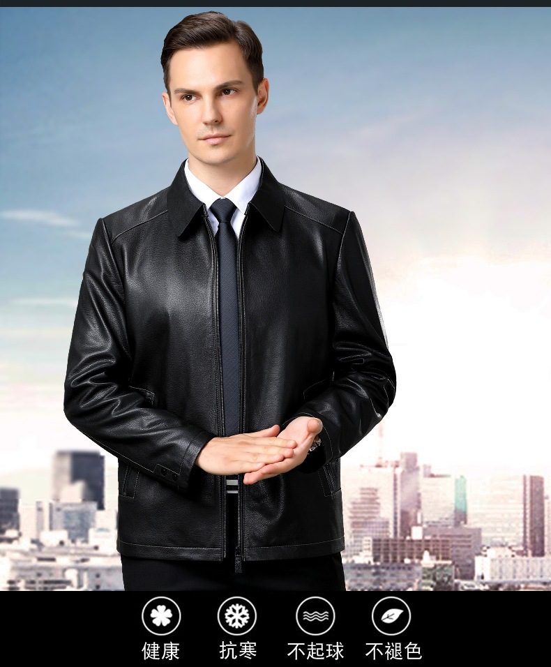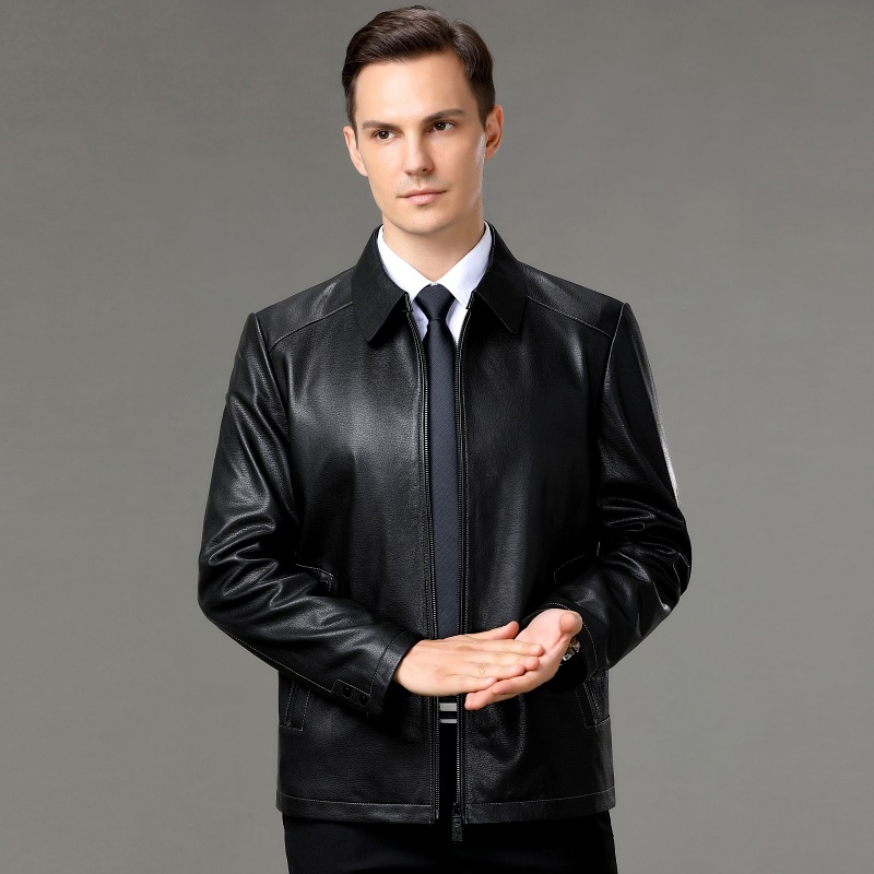 시니어 카운터 Haining Lapel Goatskin 정품 가죽 코트 중년 남성 짧은 지퍼 비즈니스 플러스 사이즈 코트스토어 가기