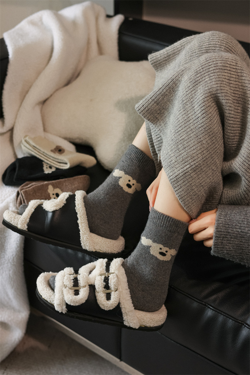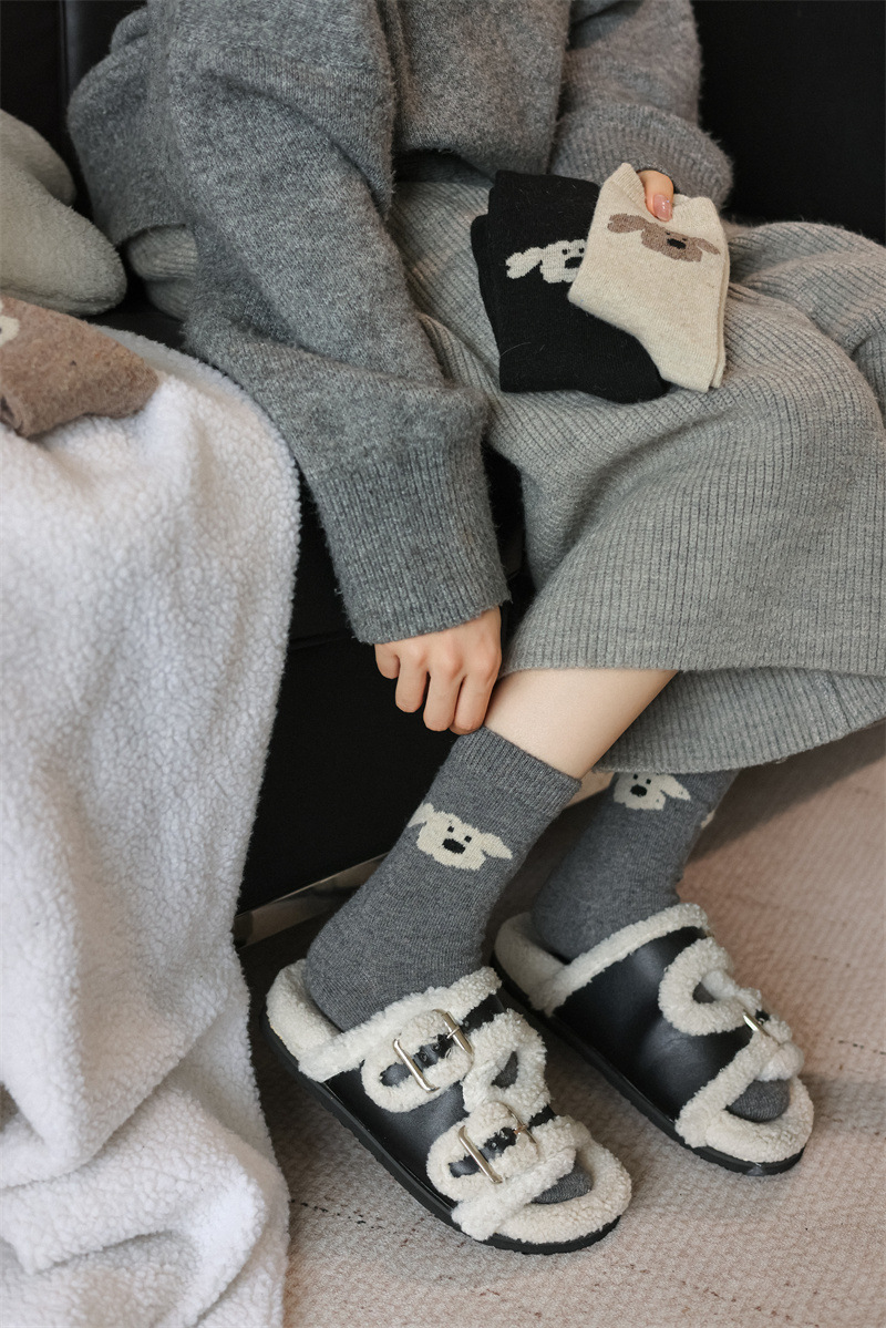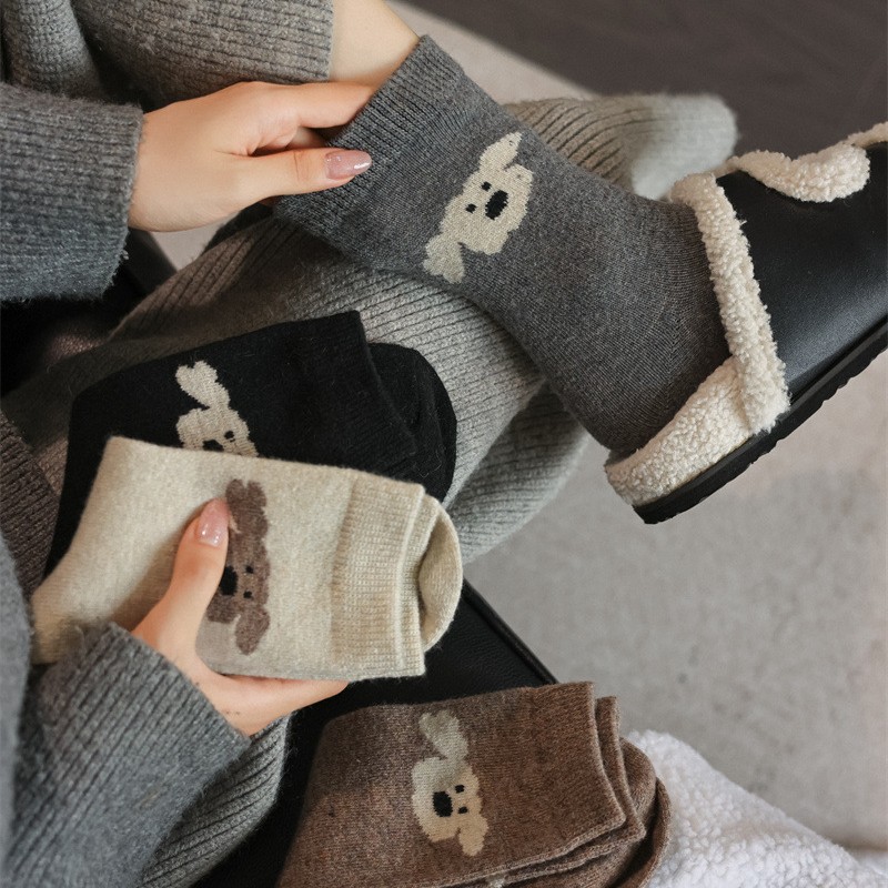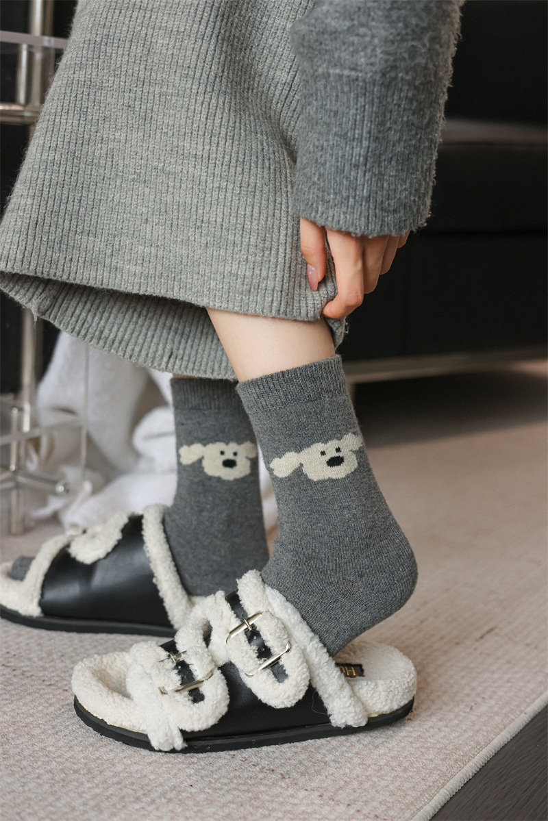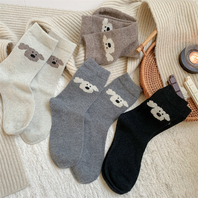 강아지 양모 양말 kikisox 겨울 두꺼운 따뜻한 그물 빨간 귀여운 튜브 여성 양말 제조 업체 도매 한국어 버전
