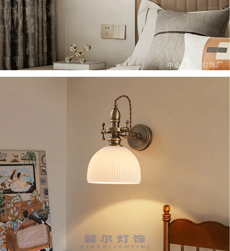 미국 국가 모든 구리 벽 램프 침실 침실 연구 독서 벽 램프 빛 럭셔리 골동품 부드러운 산업 바람 램프